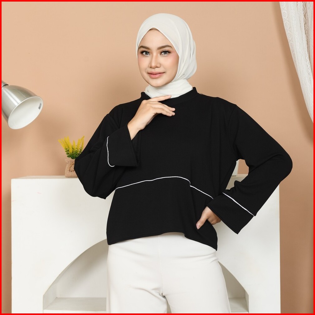 Mybamus Selia Blouse Dark Choco With List Atasan Wanita Lengan Panjang