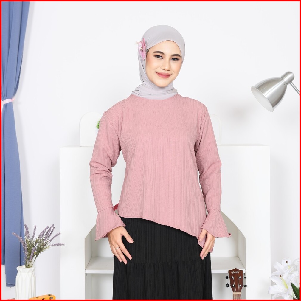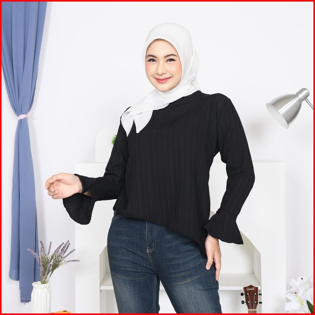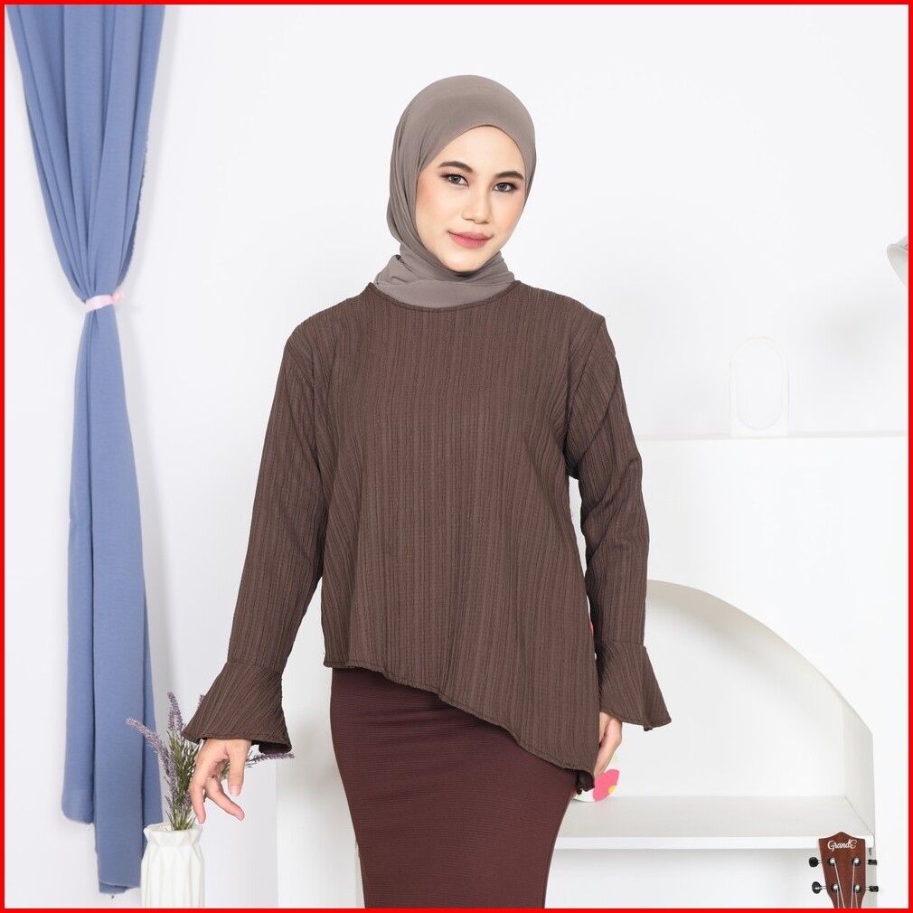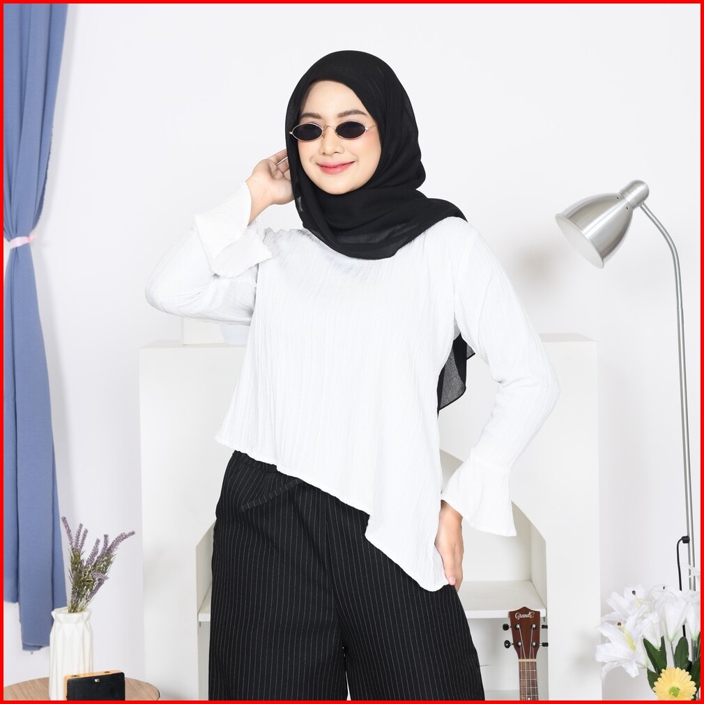 Mybamus Giselle Blouse Asimetris Atasan Slim Fit Lengan Lonceng Kekinian