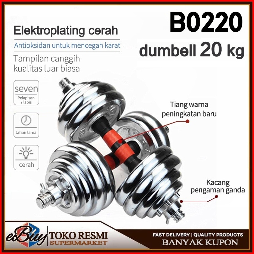 E-buy Full Iron Dumbbell 20kg Dumbbell Peralatan Fitness Dumbbell Set 1psc