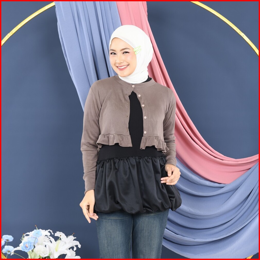 Mybamus Posie Cardigan Rib Knit Outer Wanita Cardi Korean Style Lengan Panjang Kekinian