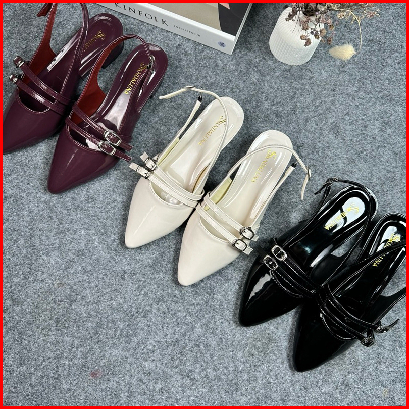 Sandaluna - Sepatu Heels Wanita 3 Cm Elegan Kekinian Terbaru Hak Tahu Sandal Mules Tali Gesper