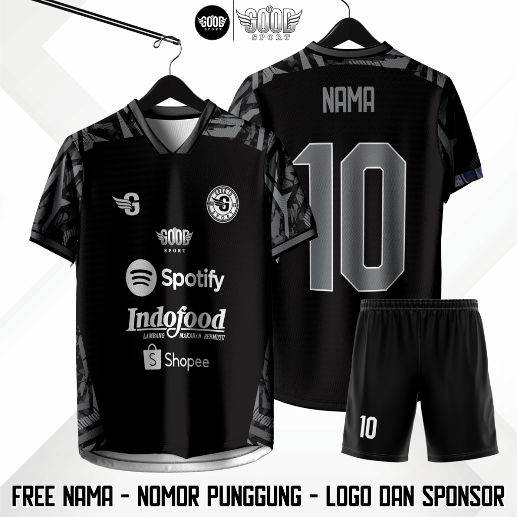 JERSEY FUTSAL / SEPAKBOLA BLACK VIRAL FREE CUSTOM NAMA NOMER PUNGGUNG LOGO NAMA TEAM FULL PRINTING