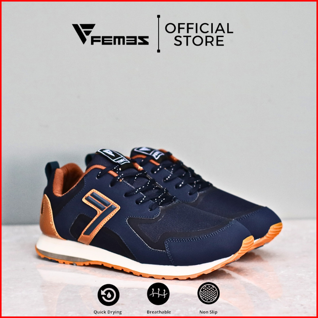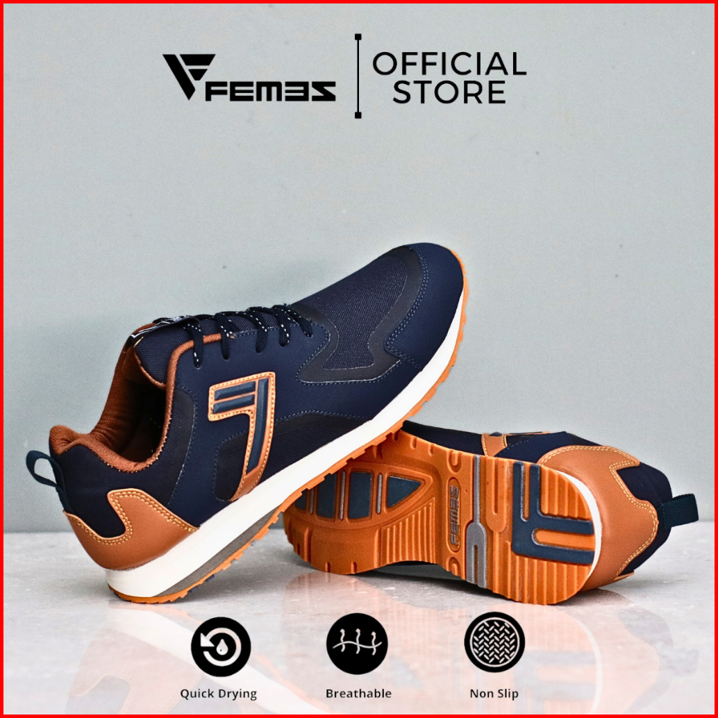 Femez Lite Zurich Sepatu Sneakers Pria 39-44 Navy Tan Biru Dongker Bigsize Sport Casual Joging