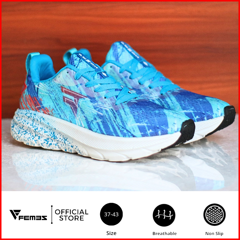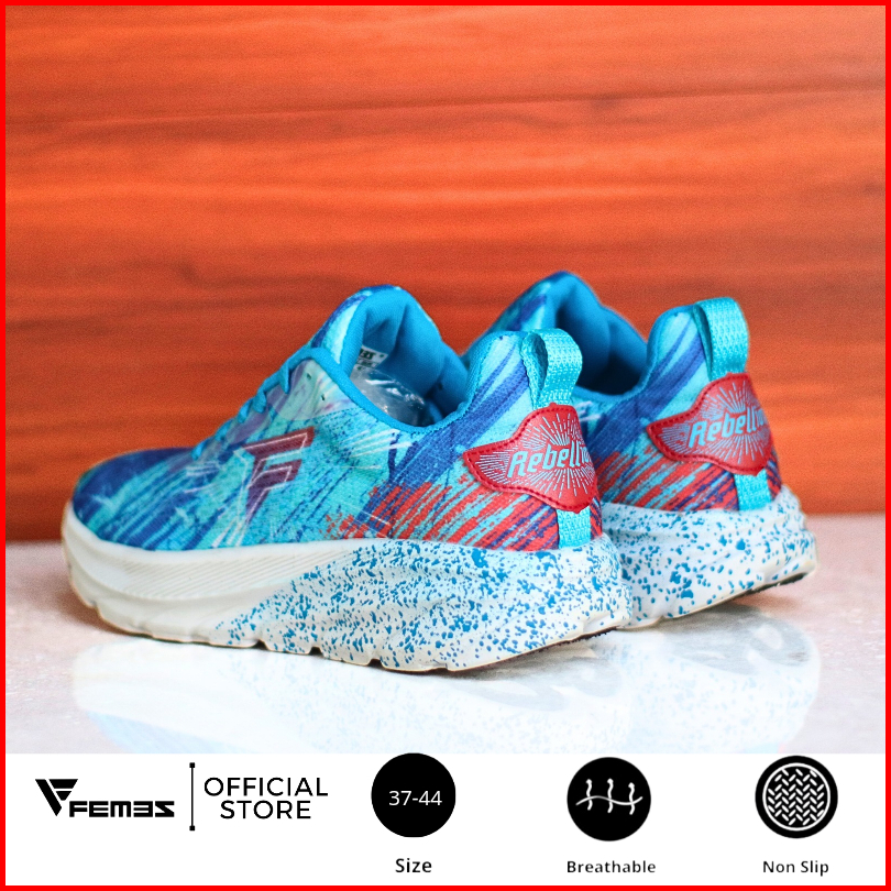 Femez Rebellion Sepatu Running Sport Olahraga Voli Biru Merah Putih Pria Wanita 37 - 44 Gym Lari