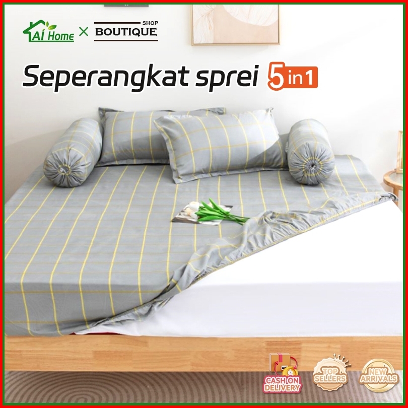 Ai Home Seprei Set Motif Aesthetic Seprei Kotak Ala Korea Ukuran 120x200cm Free Sarung Bantal Guling