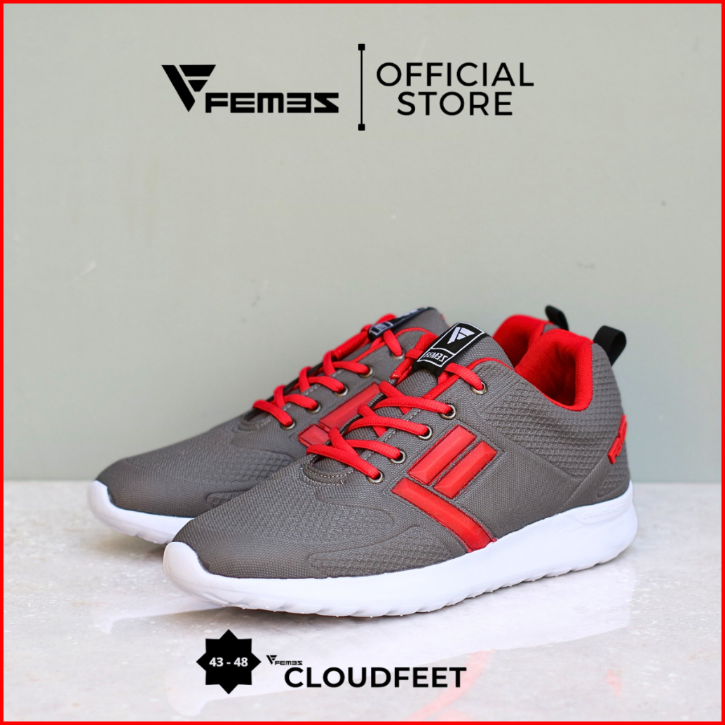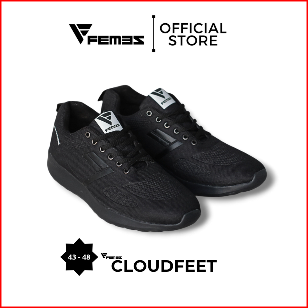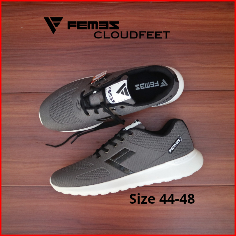 Femez Cloudfeet Sepatu Casual Pria Ukuran Big Size Jumbo 43-48 Abu Hitam Sport Olahraga Sepatu Polos