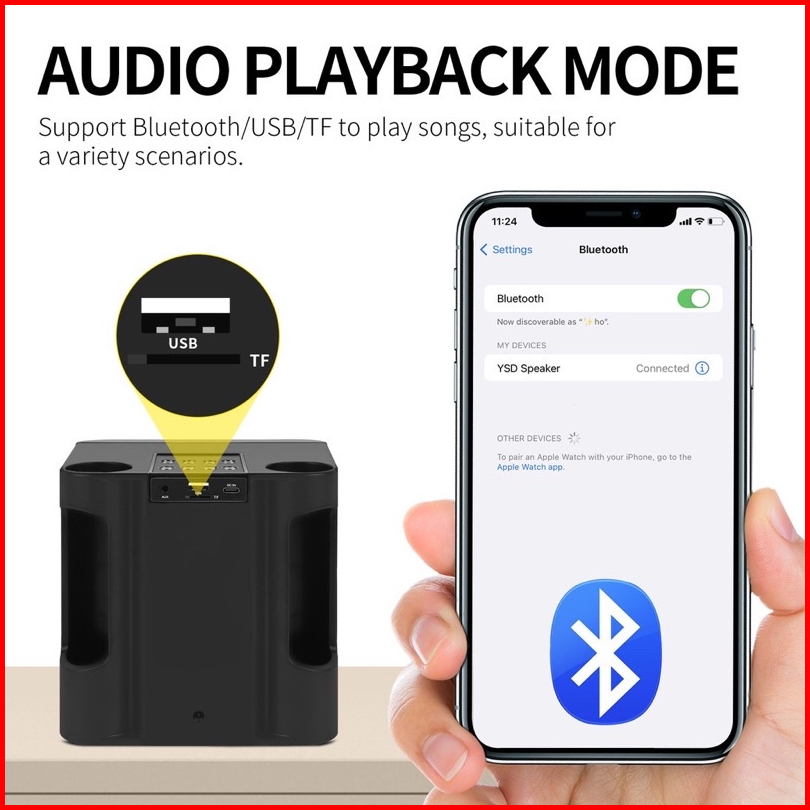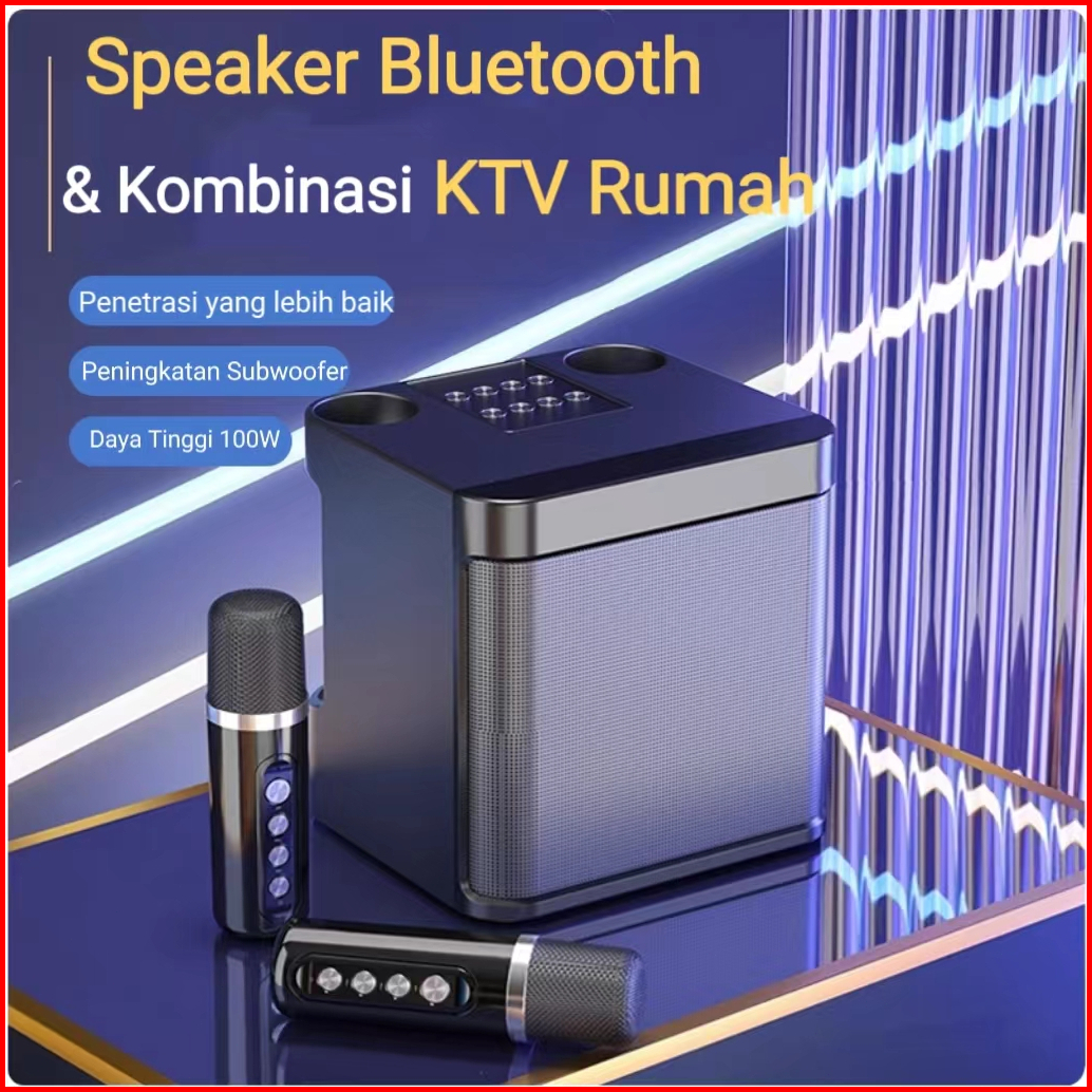 Ys-203 Bluetooth Speaker Wireless 2 Mic Bluetooth Ktv Equipment 3d Stereo Microphone For Family Party