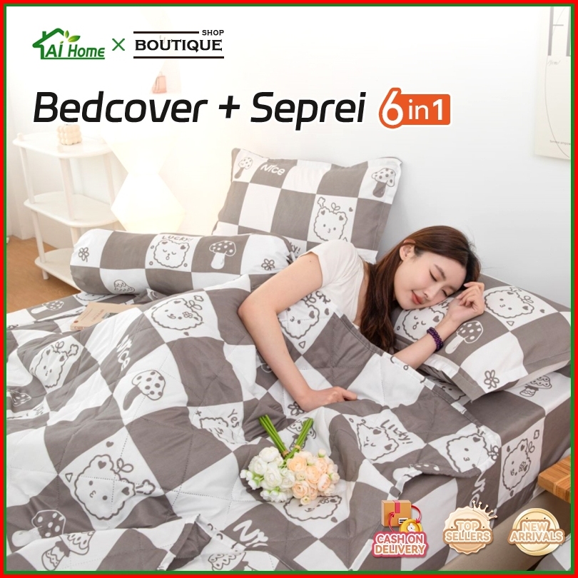 Ai Home Bedcover Seprei Set Sarung Bantal Dan Sarung Guling Uk180cm X 200cm Bahan Polyester Aesthetic Korea