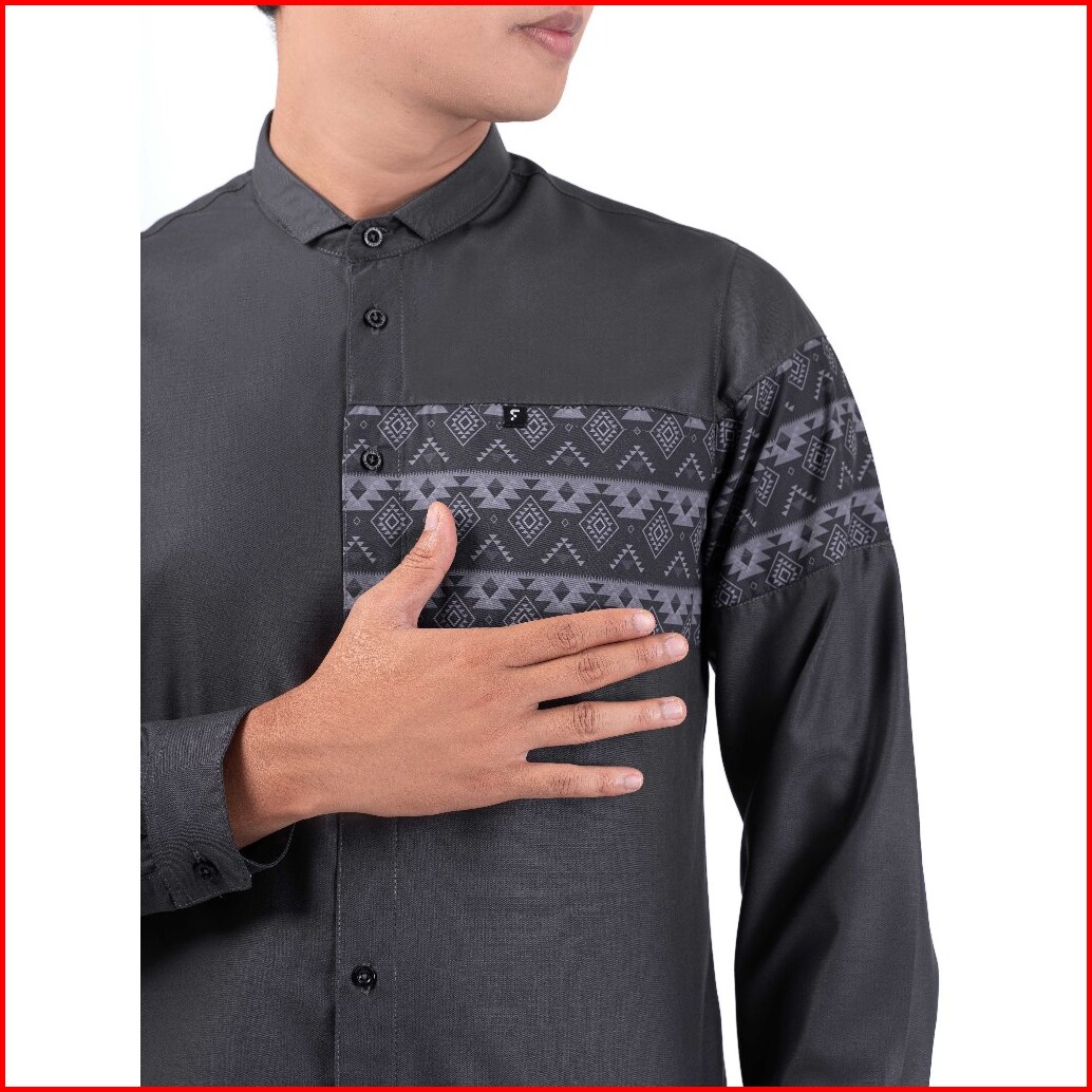 Fadkhera Shafwan Charcoal Baju Koko Pria Muslim Modern Kemko Lengan Panjang