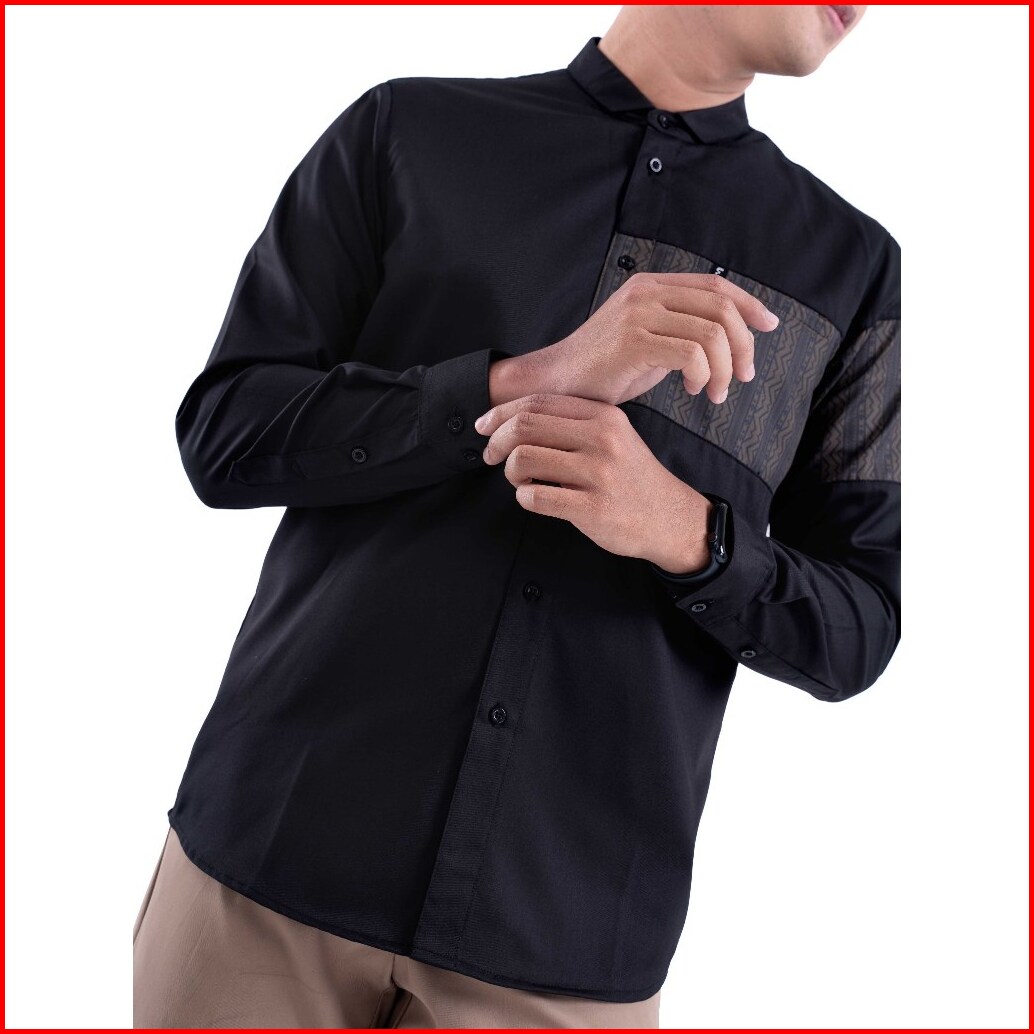 Fadkhera Atif Baju Koko Pria Muslim Dewasa Lengan Panjang Kemeja Kemko Lebaran Baru 2025