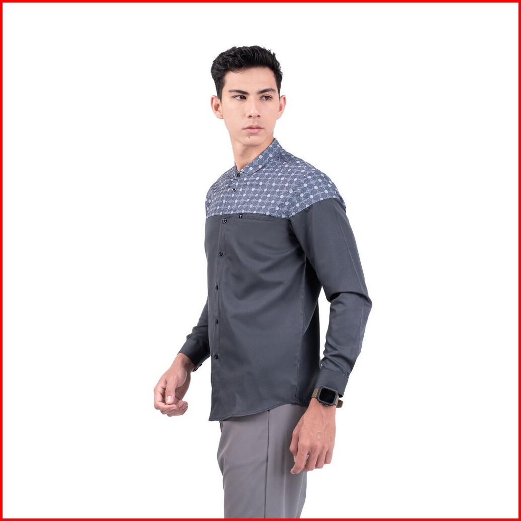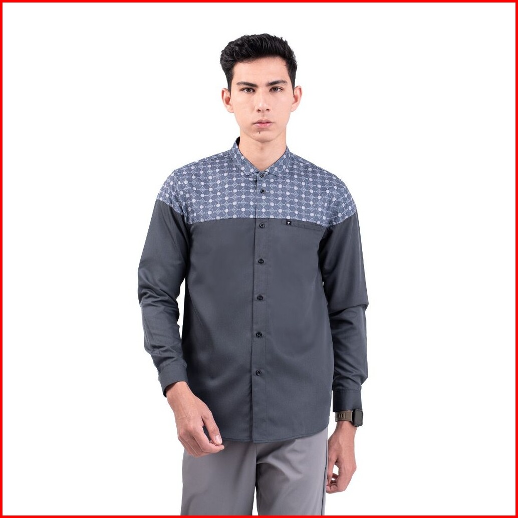 Fadkhera Aufan Dark Grey Baju Koko Pria Modern Premium Atasan Muslim Lengan Panjang