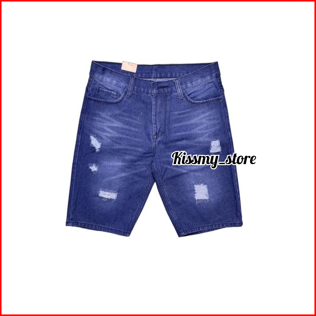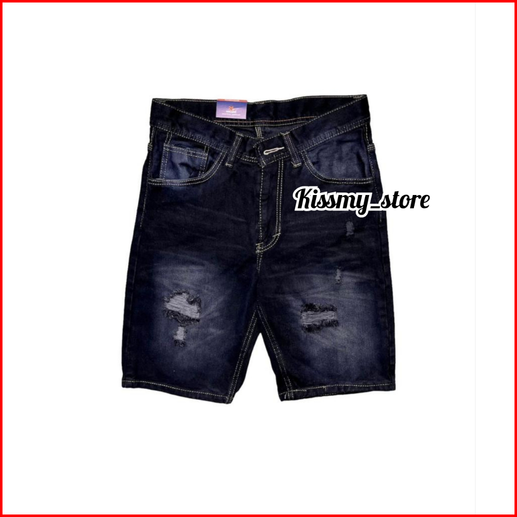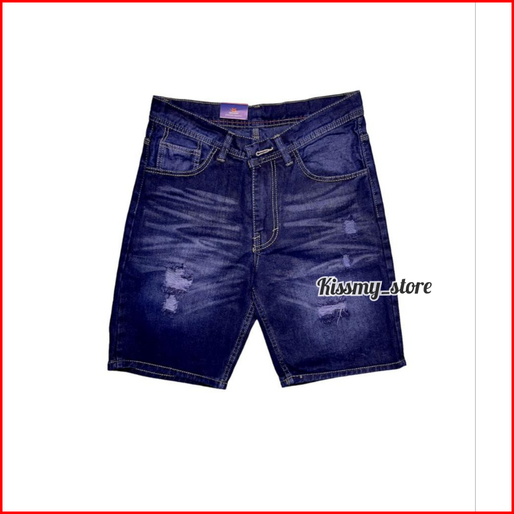 Celana Jeans Pendek Pria Whisker Sobek Celana Cowok