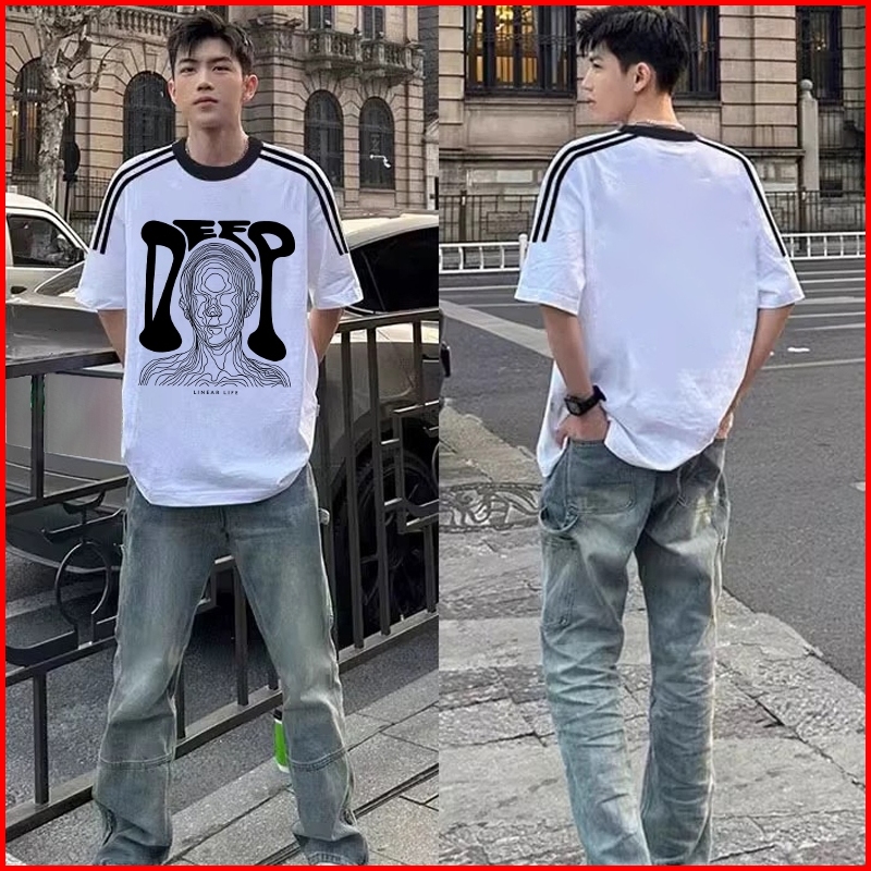 Baju Kaos Pria Distro Premium Oversize Kaos Stripe Raglan Katun Casual Kaos Sablon Desain Eksklusif Atasan Kaos Pria Ker