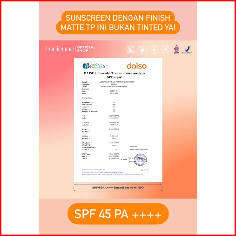 Ready Stock Kemasan Baru - Lucienne Matte Tinted Glowing Sunscreen Sunscreen Kemasan Baru Ungu Spf 50pa Sunblock Pelemba