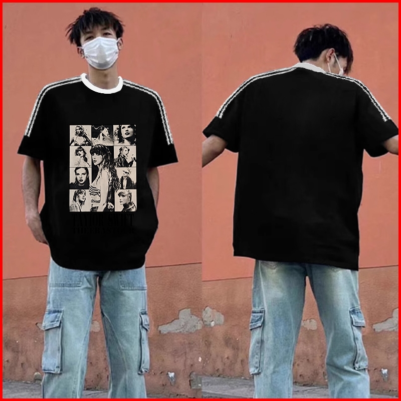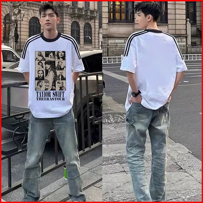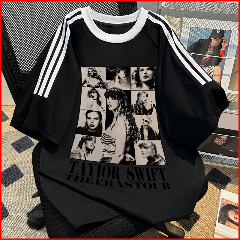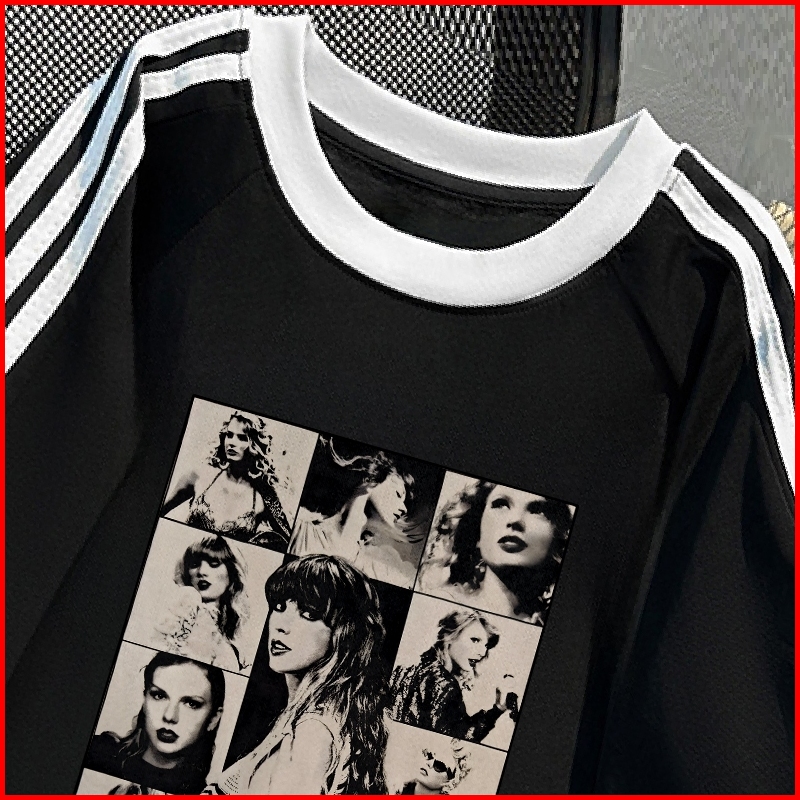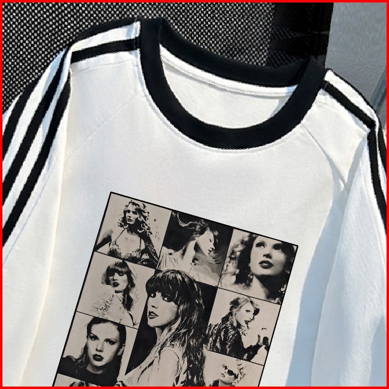 Kaos Wanita Oversize New Arrival 2025 Kaos Motif Sablon Taylor Swift Vintage Stripes Raglan White T Shirt Atasan Olahrag