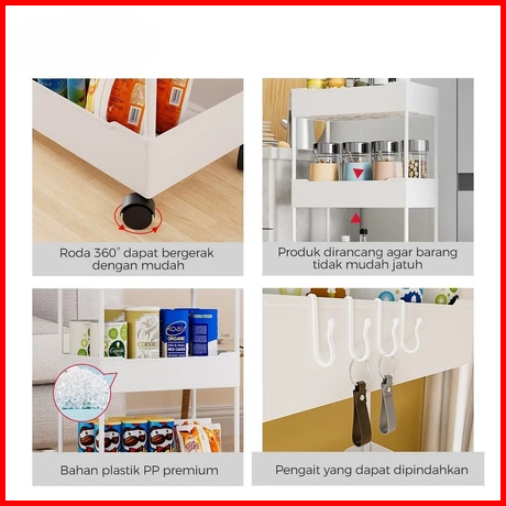 Tidygo Square Rak Dapur Rak Toilet Rak Susun Serbaguna Rak Dorong Rak Salon Rak Troli 3 4 Tingkat Dengan Roda