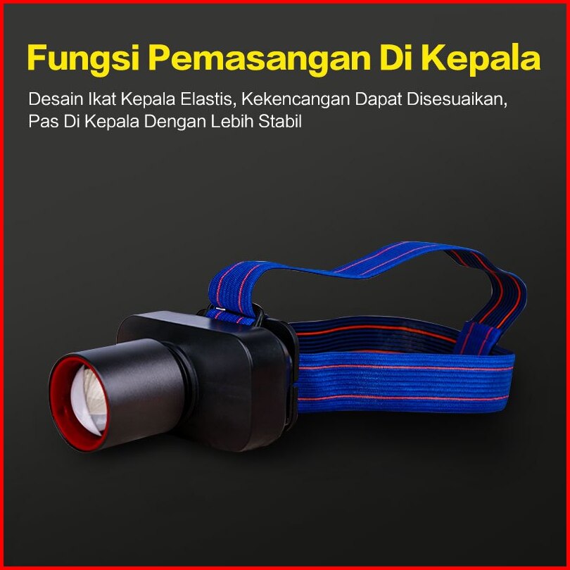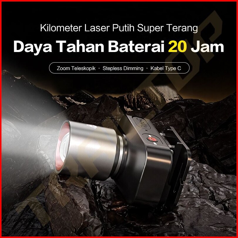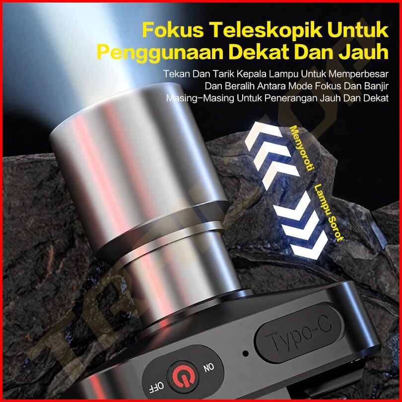 Trailtop Senter Kepala Zoom Head Lamp Led 60 Watt Super Terang Senter Kepala Rechargeable Type C