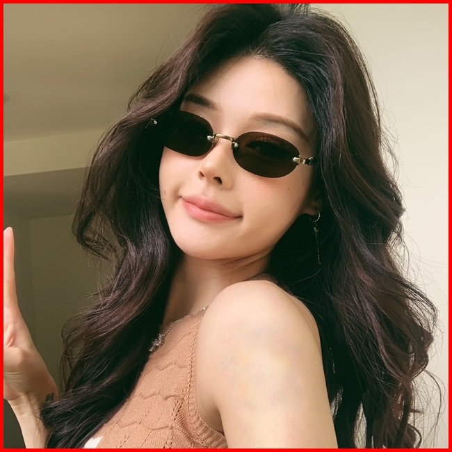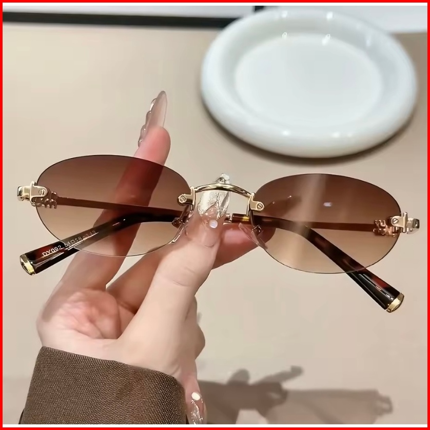Kacamata Hitam Wanita Lensa Rimless Oval Anti Uv - Vintage Retro Sunglasses Abl2555ov Fullset Box Dan Lap