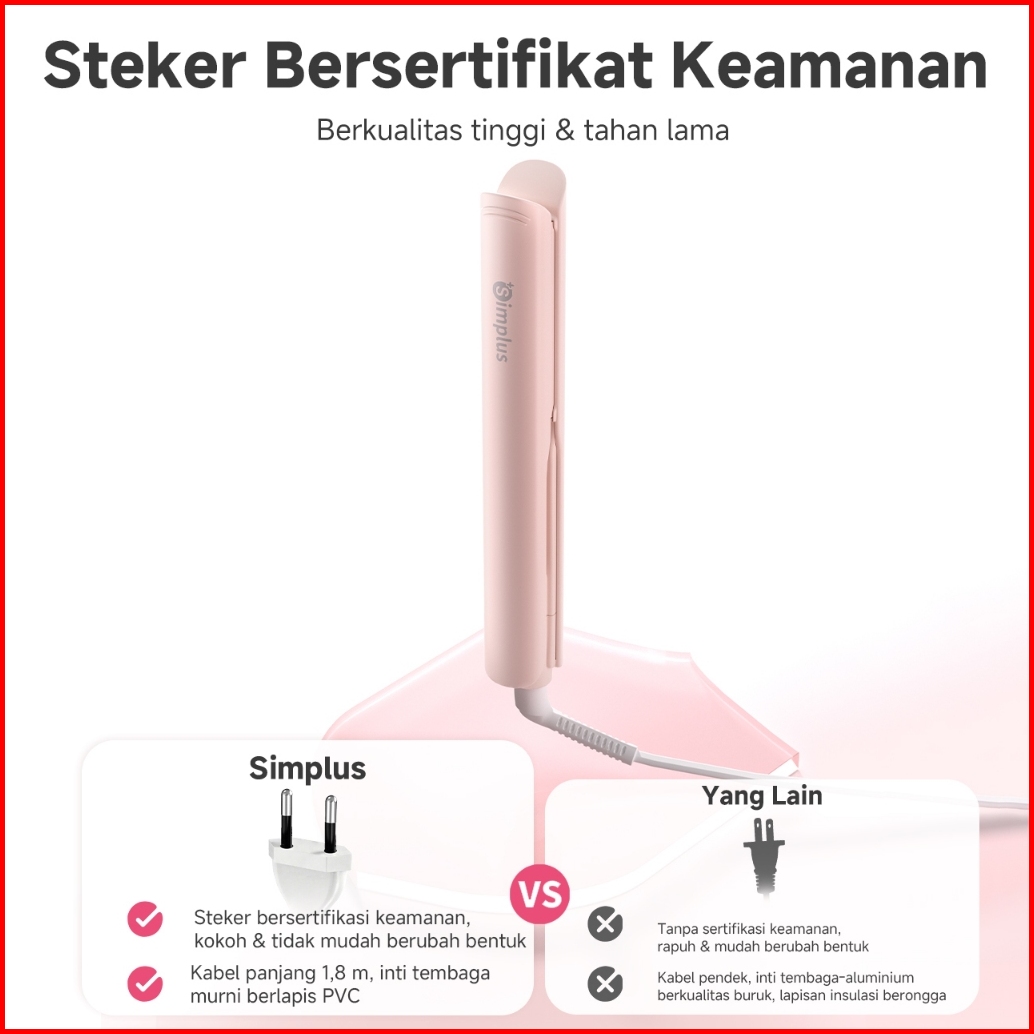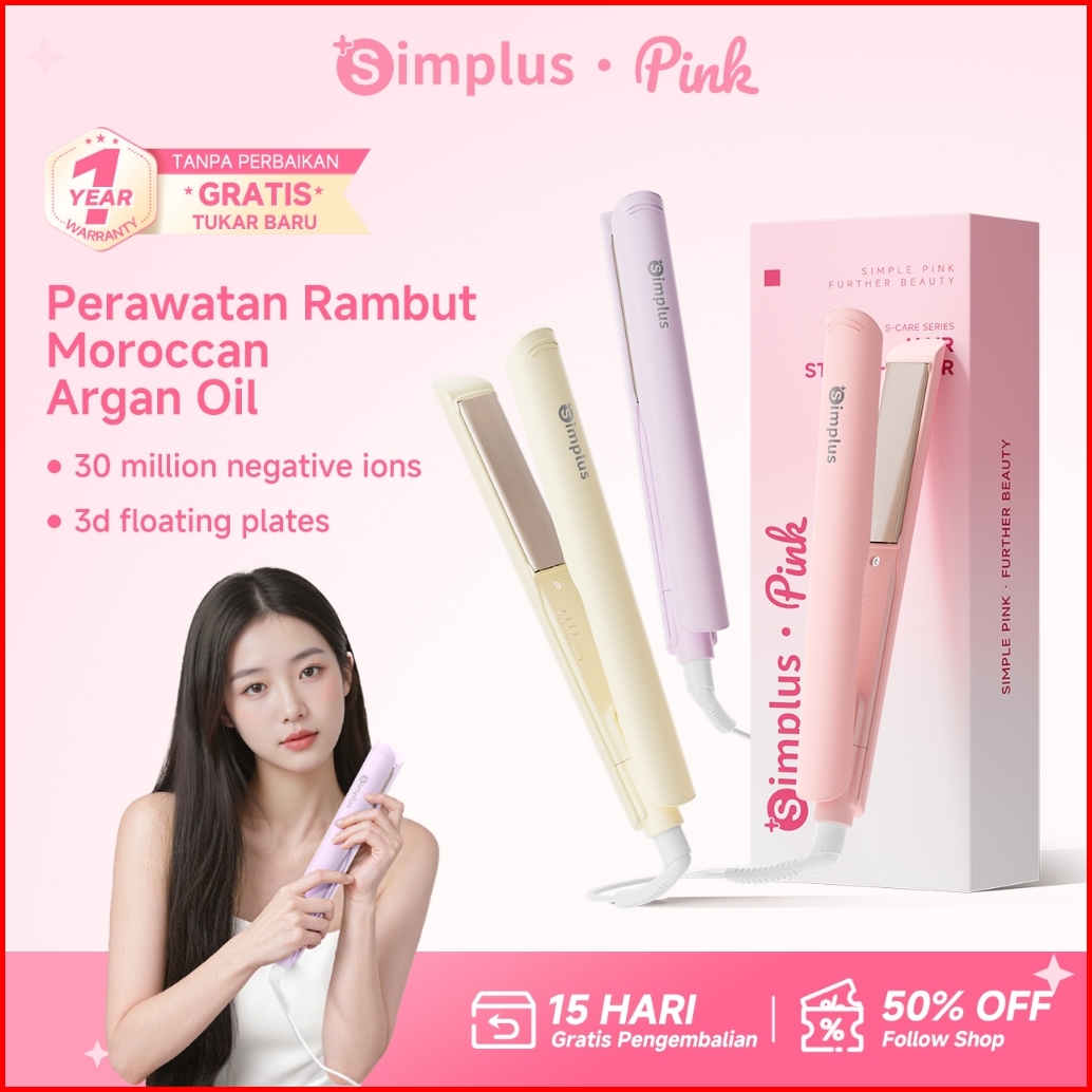 Simplus Pink Hair Straightener 2-in-1 Straightening Curling Portable 3 Temperature Settings