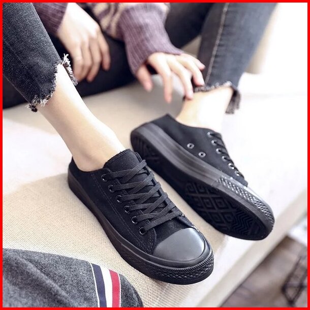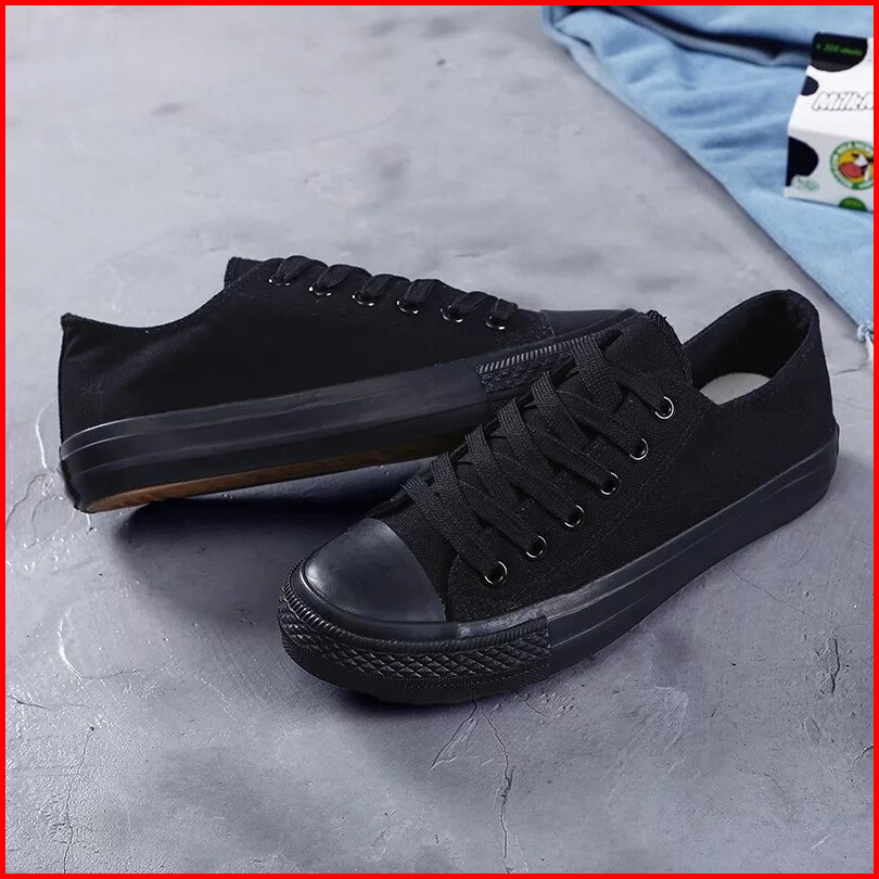 Original Perfect Sepatu Sneaker Pendek Hitam Polos Kanvas Premium Pria Dan Wanita Sepatu Sekolah Anak Dan Dewasa Sepatu