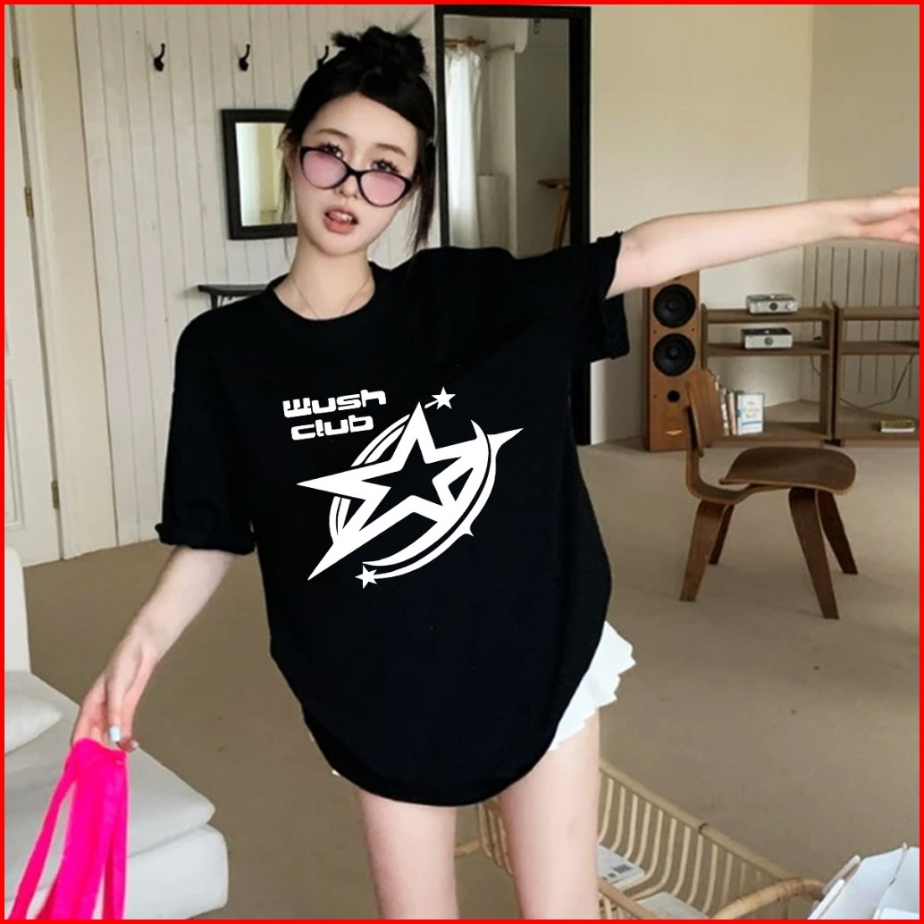 Lovful - Premium Kaos Lengan Pendek Oversize Star Print T-shirt Atasan Baju Korean Style Atasan Wanita.fitted Shirt