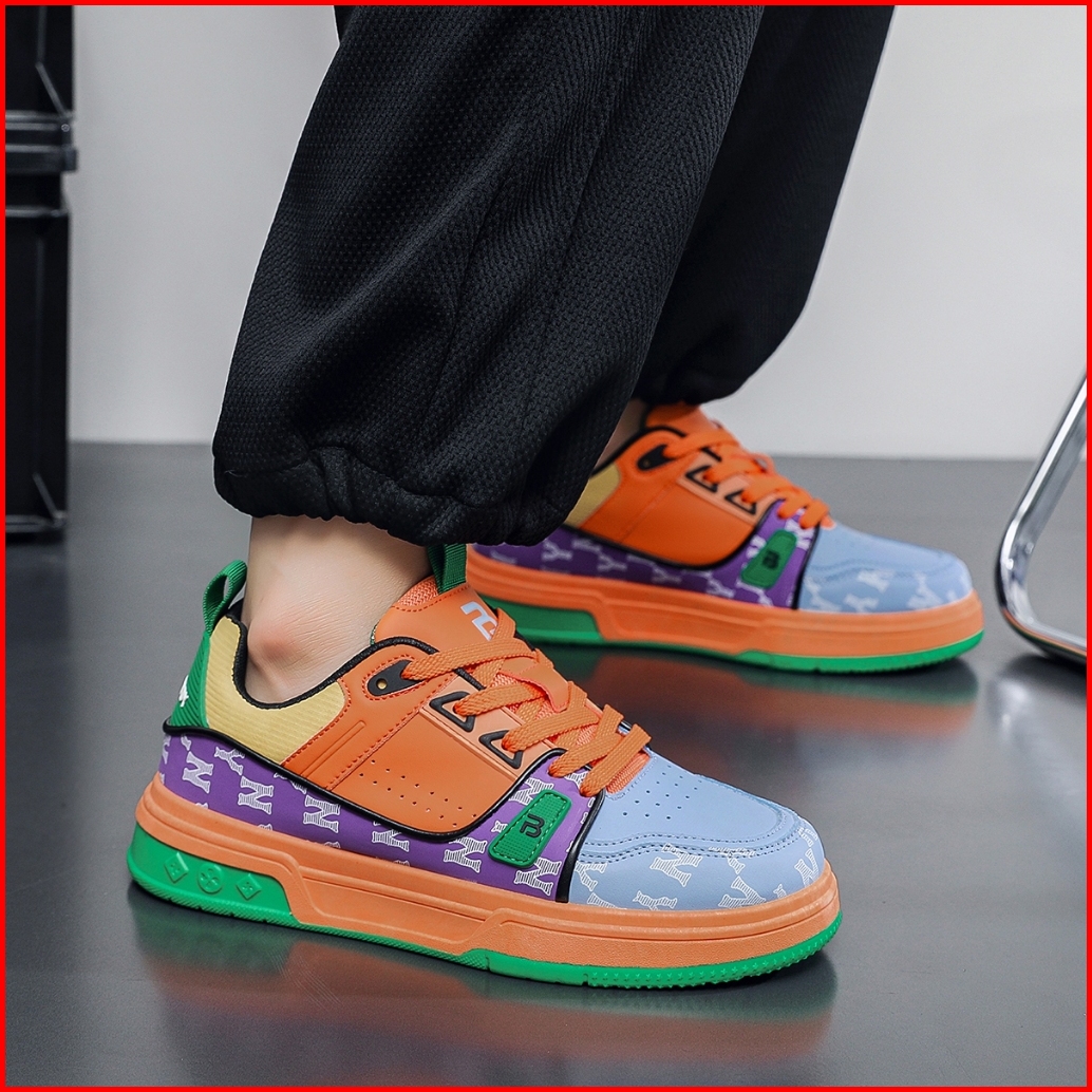 Panarybody Sepatu Sneakers Cowok Hijau Oranye Sepatu Olahraga Sneakers Pria Korean Fashion Q1813-1