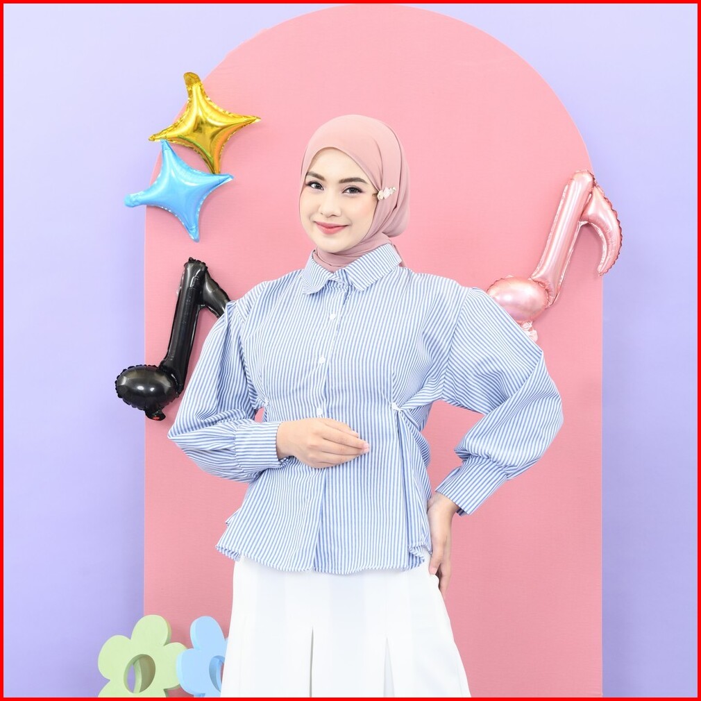 Mybamus X Oemahayu Dyandra Kemeja Pleated Poplin Lengan Balloon Tops