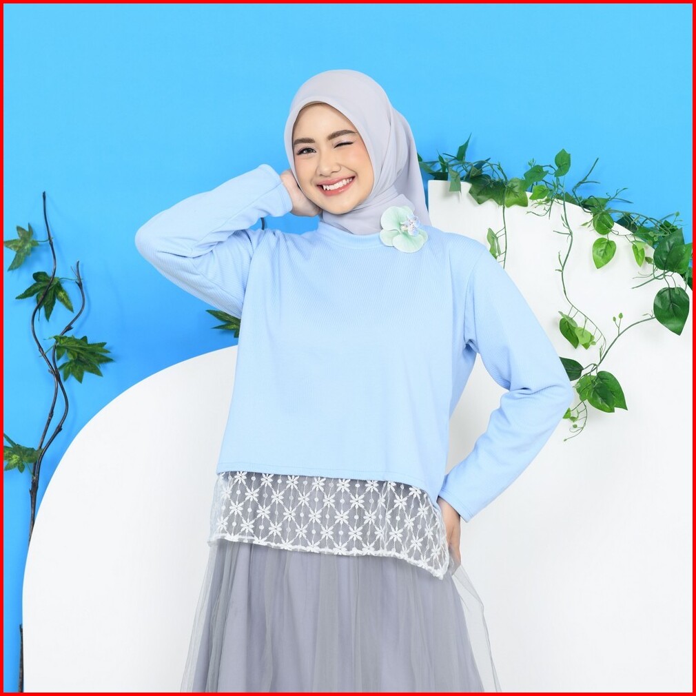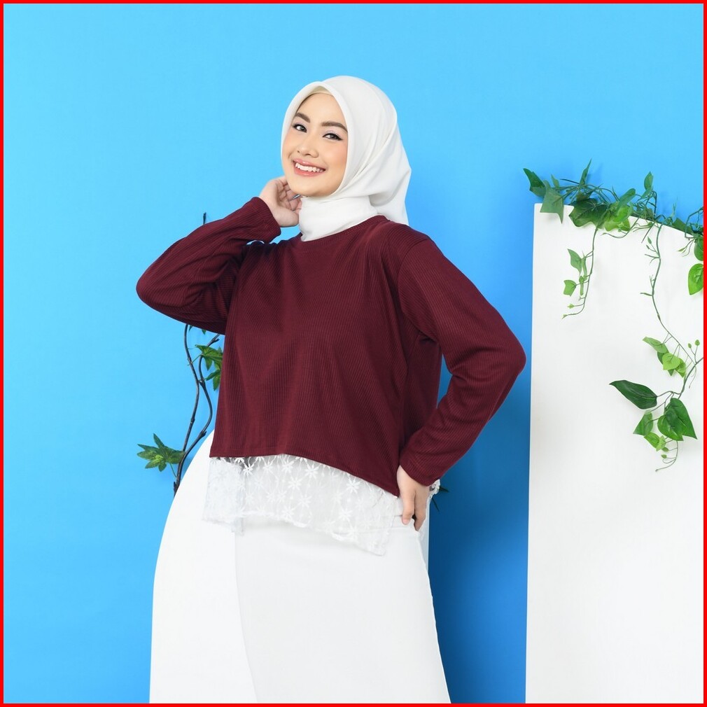 Mybamus Olif Tops Atasan Wanita Sweater Lace Blouse Lengan Panjang Korean Style