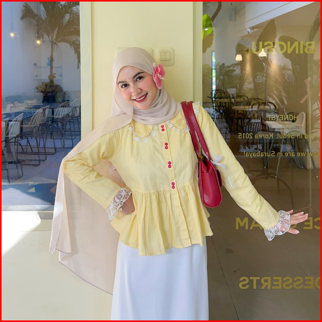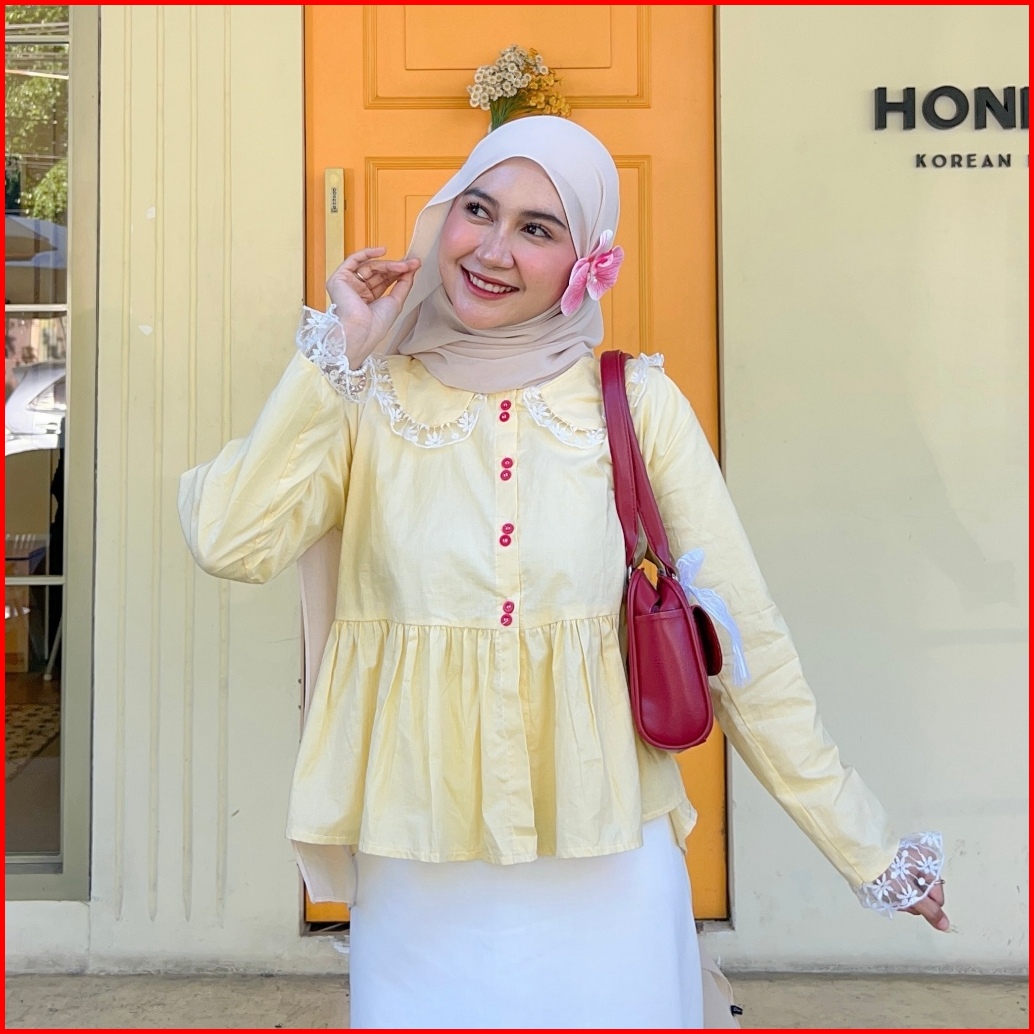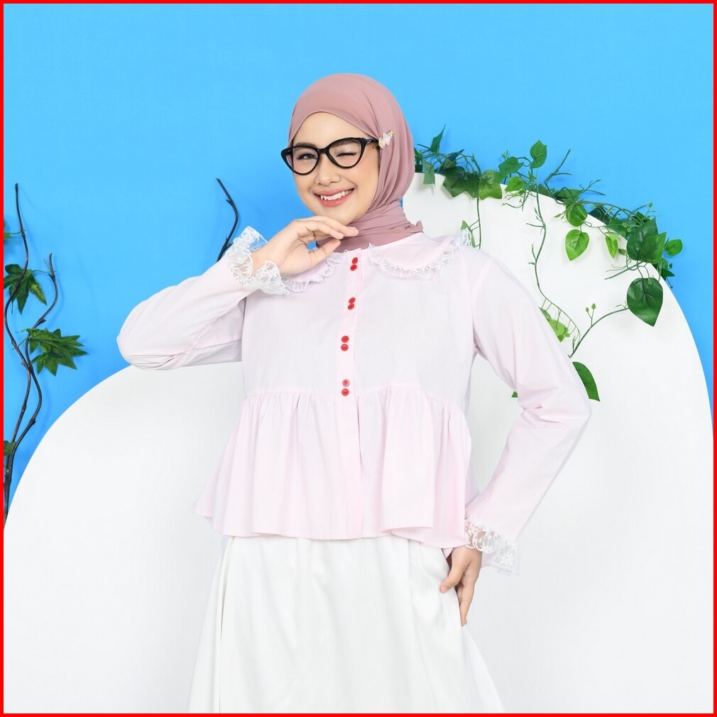 Mybamus X Nabilabyaaa Biyaa Poplin Blouse Atasan Wanita Lengan Panjang Renda Collar