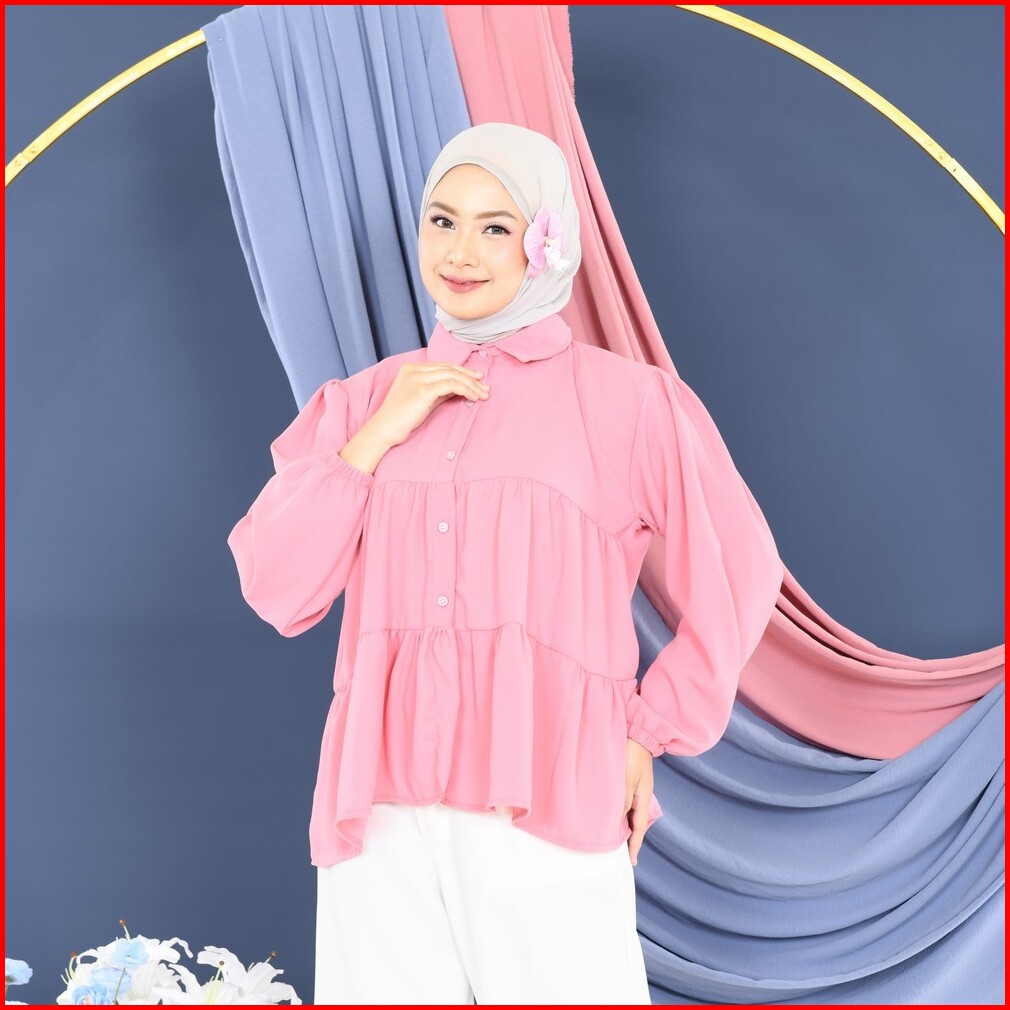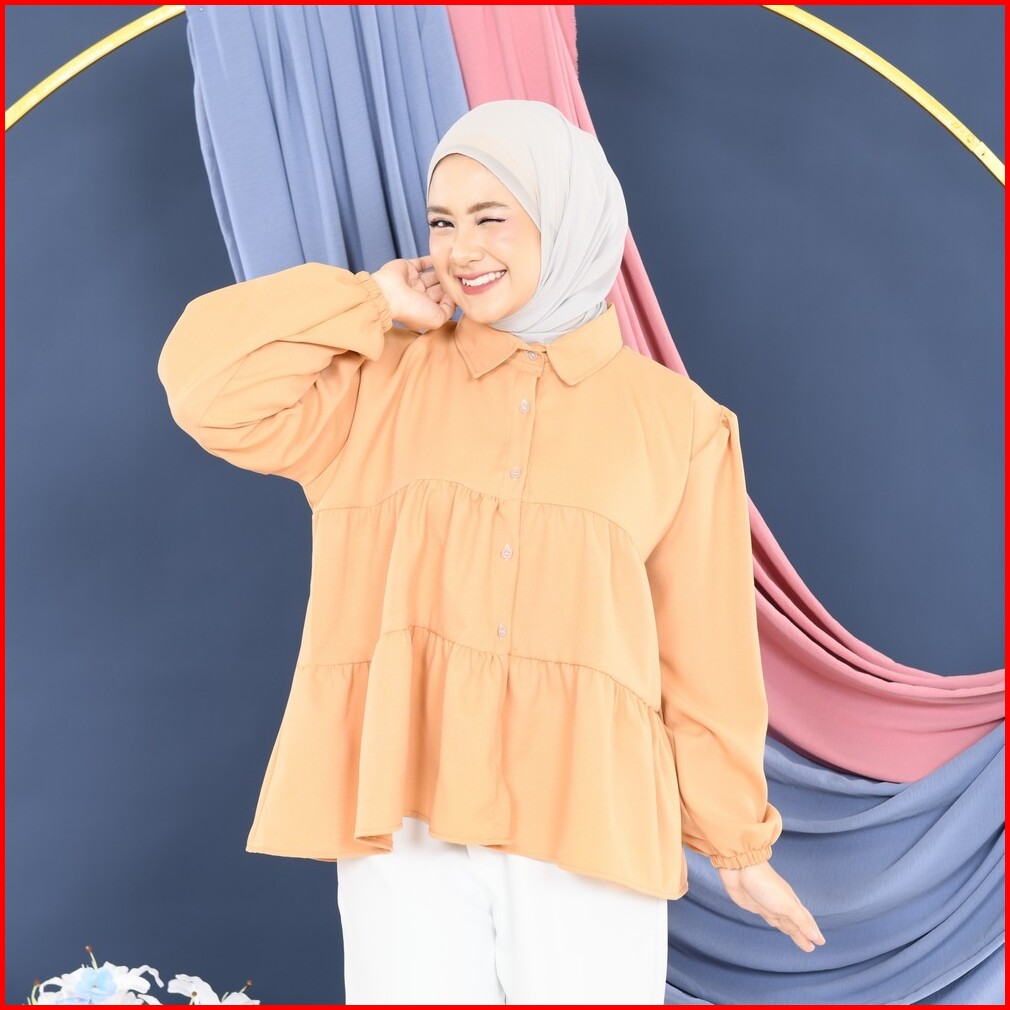 Mybamus Enjely Kemeja Umpak Blouse Kerut Lengan Panjang Atasan Wanita Korean Style