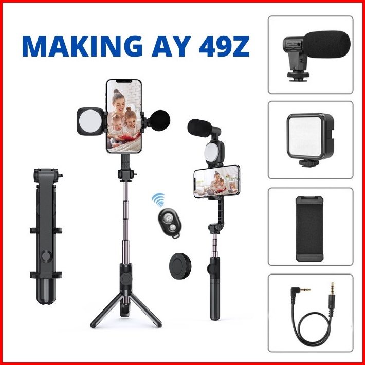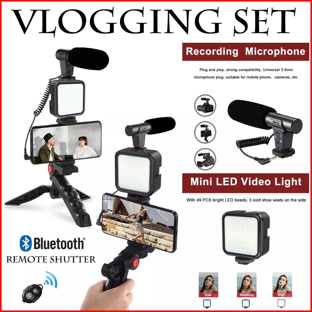 Vlogging Kit Paket Vlog 5in1 Ay49 Led Light Tripod Phone Holder Microphone Remote Shutter Complete Set Vlogging Micropho