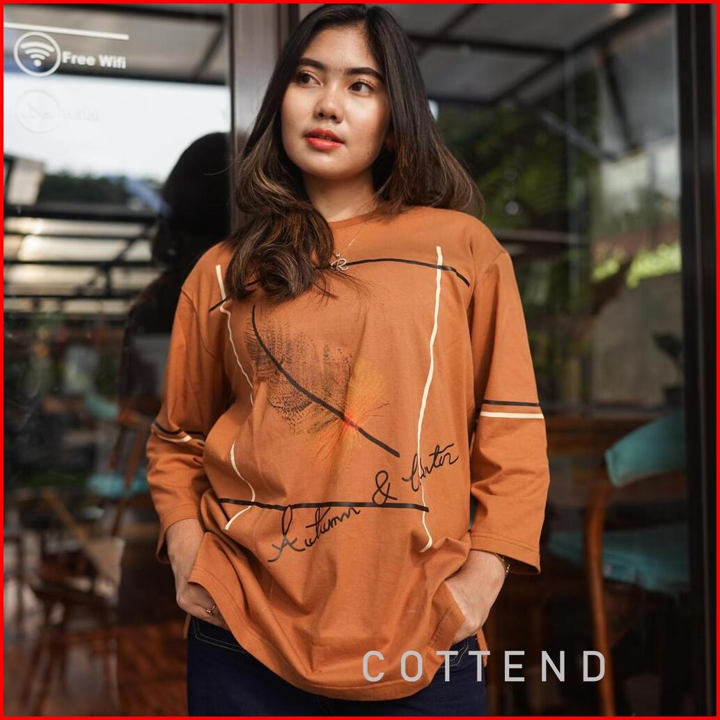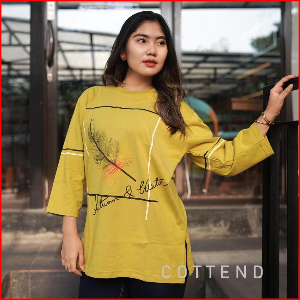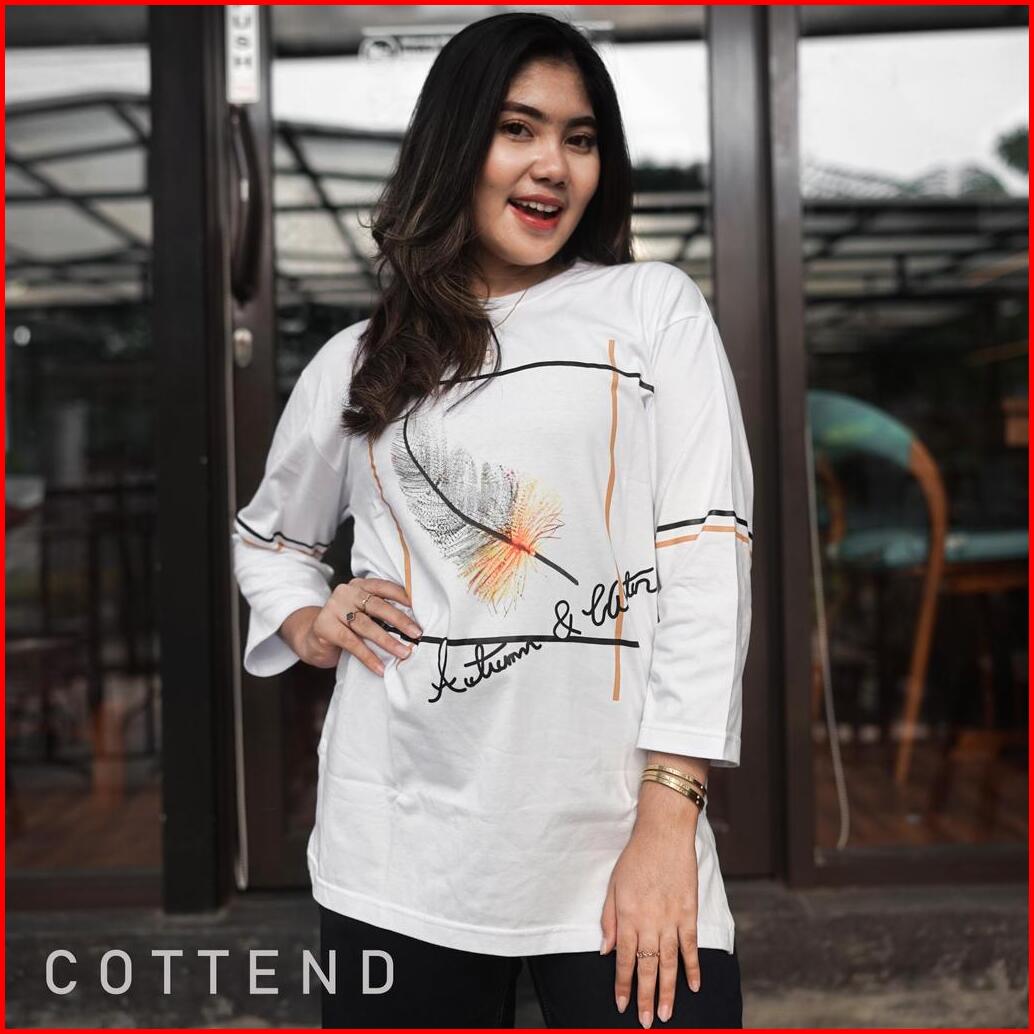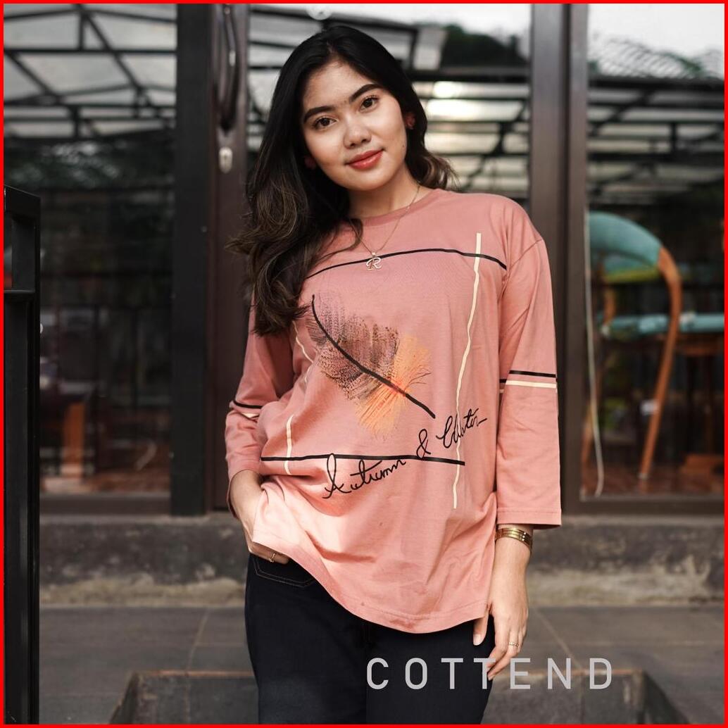 Cottend Oversized Bulu Baju Kaos Atasan Wanita Lengan 7 8 Bahan Katun Combed Tebal Nyaman Dipakai Sehari Hari
