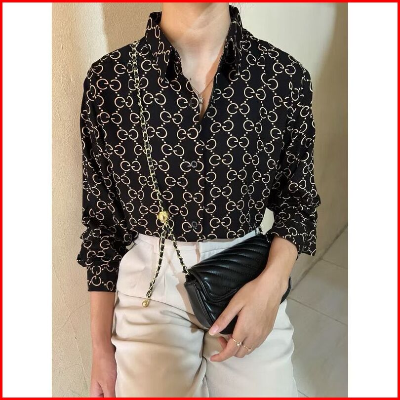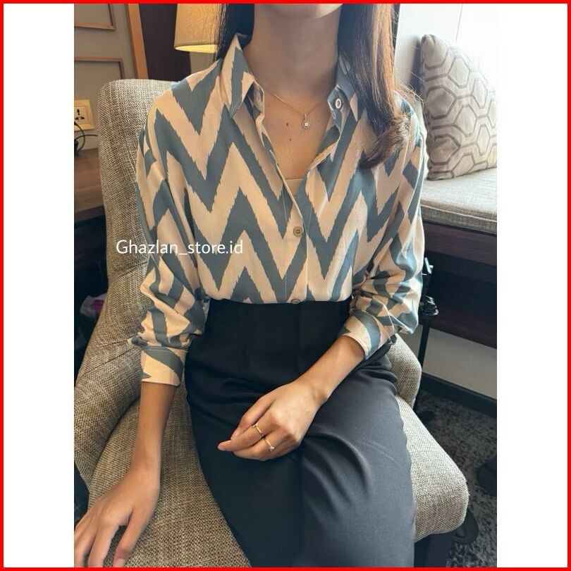Atasan Kemeja Rayon Motif Wanita Kekinian Kemeja Viral Rayon Lengan Panjan