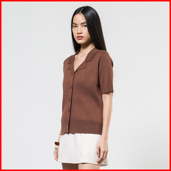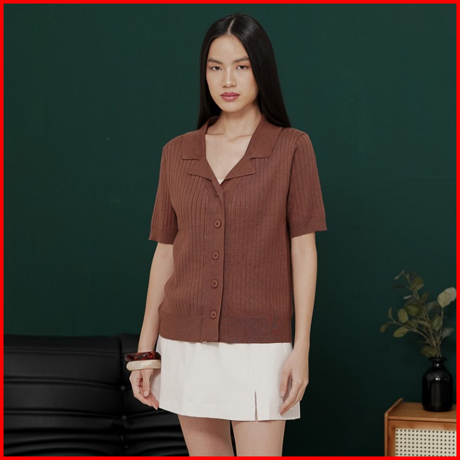 This Is April Atasan Rajut Knitwear Wanita Lengan Pendek Yorin Cardigan Brown 60013800