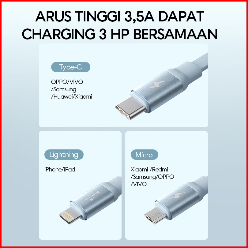Vivan Kabel Data 3 In 1 Vrs03 Fast Charging 3.5a Micro Usb Lightning Type C 120cm Garansi 1 Tahun