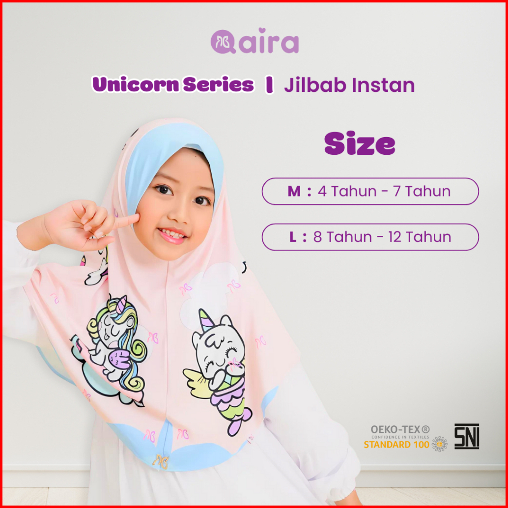 Qaira Jilbab Anak Karakter Printing Unicorn Series