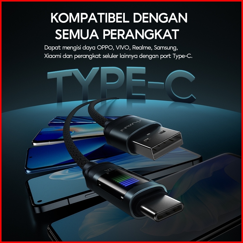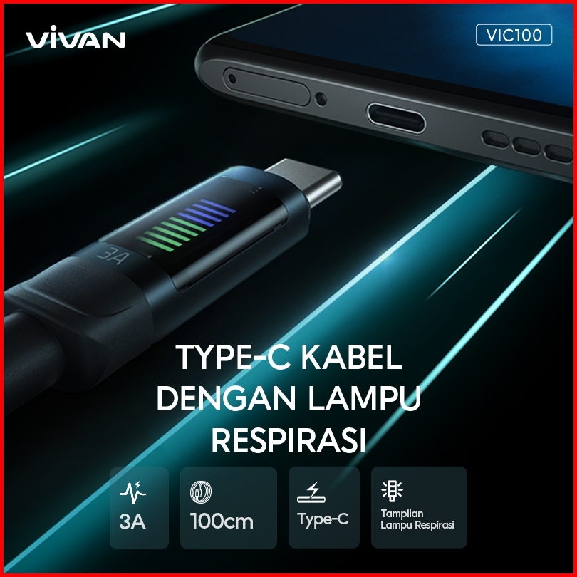 Vivan Kabel Data Usb To Type C Vic100s Fast Charging 3a Light Effect 1m Garansi 1 Tahun