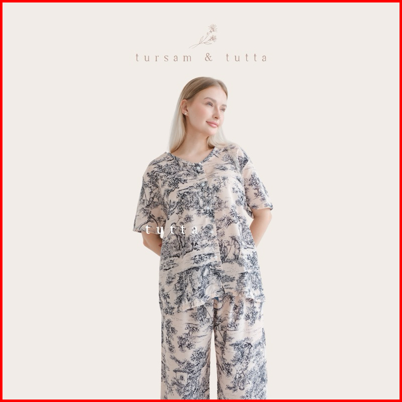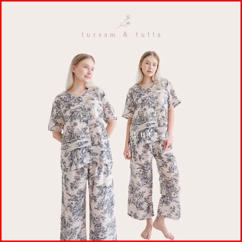 Tursam Tutta - Piyama Kancing Ibu Menyusui Busui Fit To Jumbo Lengan Pendek Baju Tidur Wanita Satu Set Celana Panjang Ka