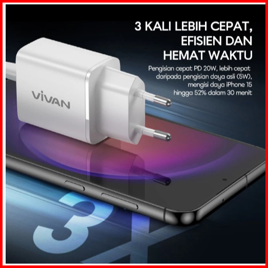 Free Cable Vivan Adaptor Kepala Charger For Iphone Samsung Huawei Xiaomi Realme Type C Usb Lightning Fast Charging 18w 2