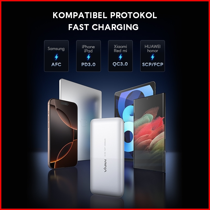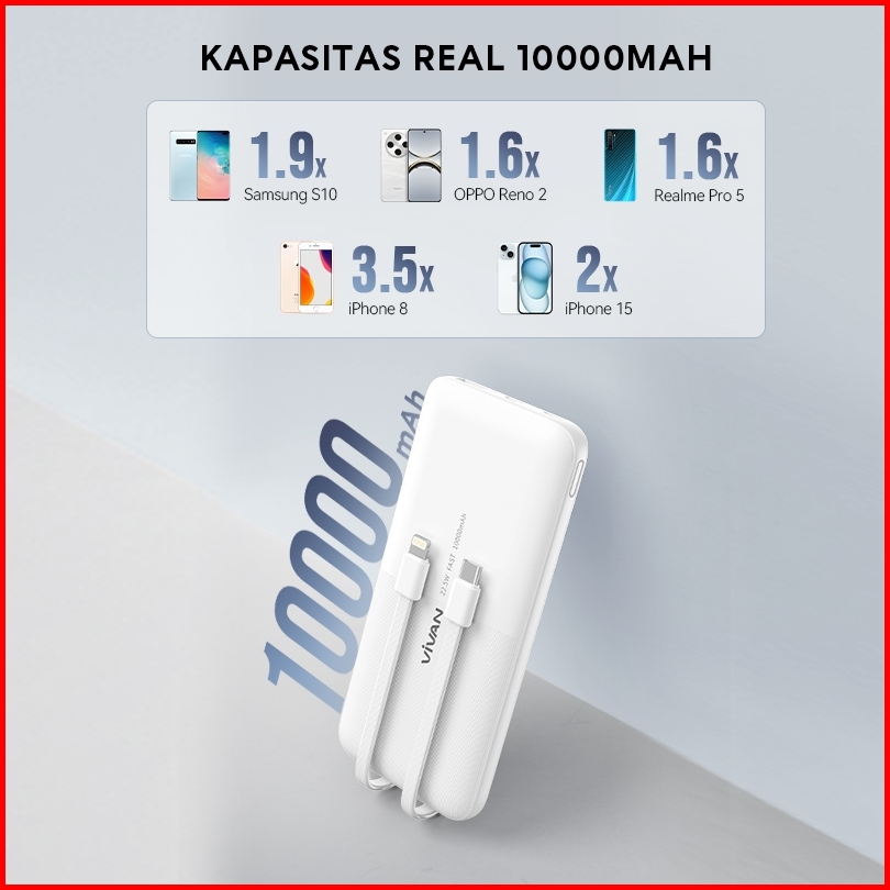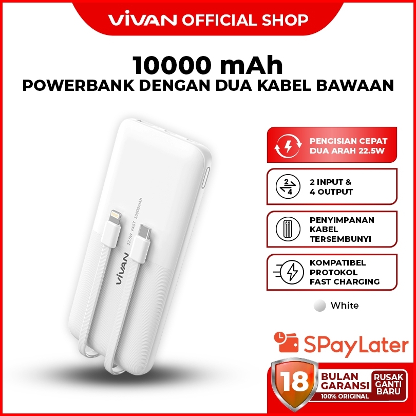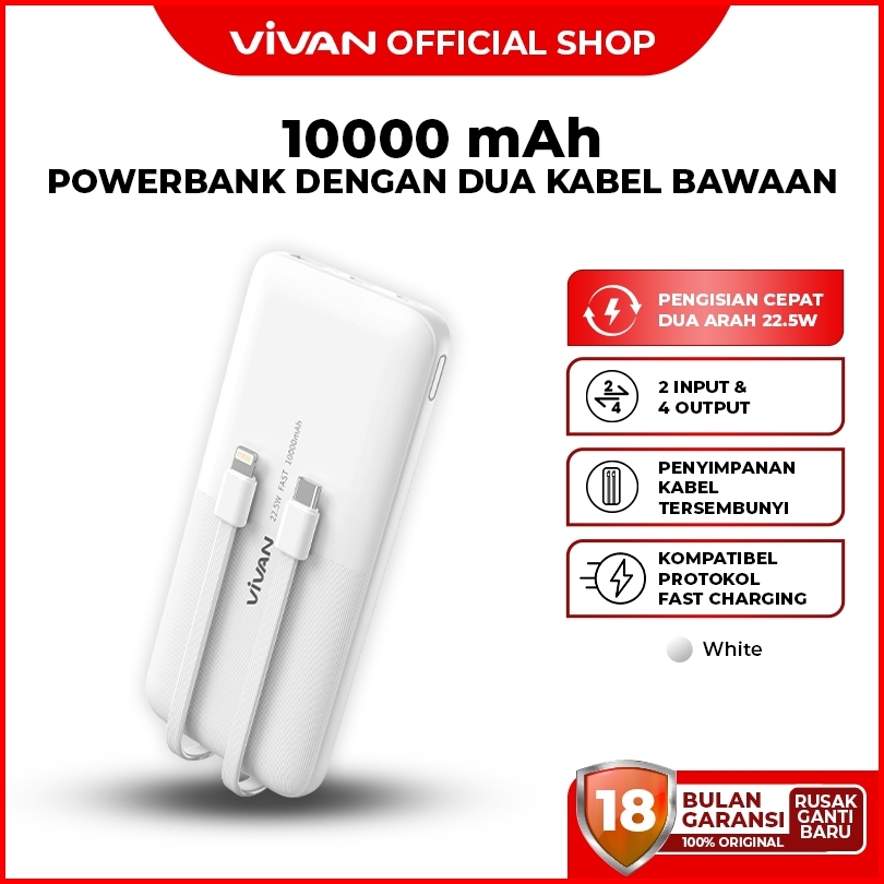 Vivan Power Bank 10000mah Fast Charging 22.5w 2 Input 4 Output Vpb-e10s Garansi 18 Bulan
