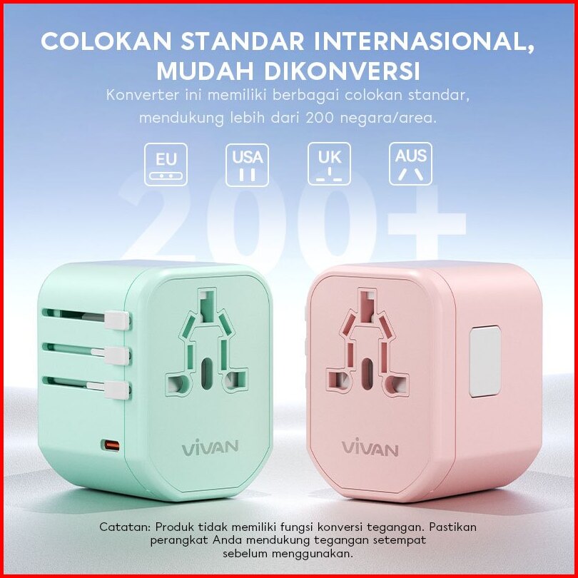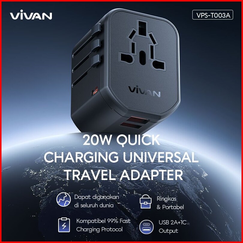 Vivan Universal Travel Adaptor 20w Vps-t003a Series Multi-country Snl Garansi 36 Bulan