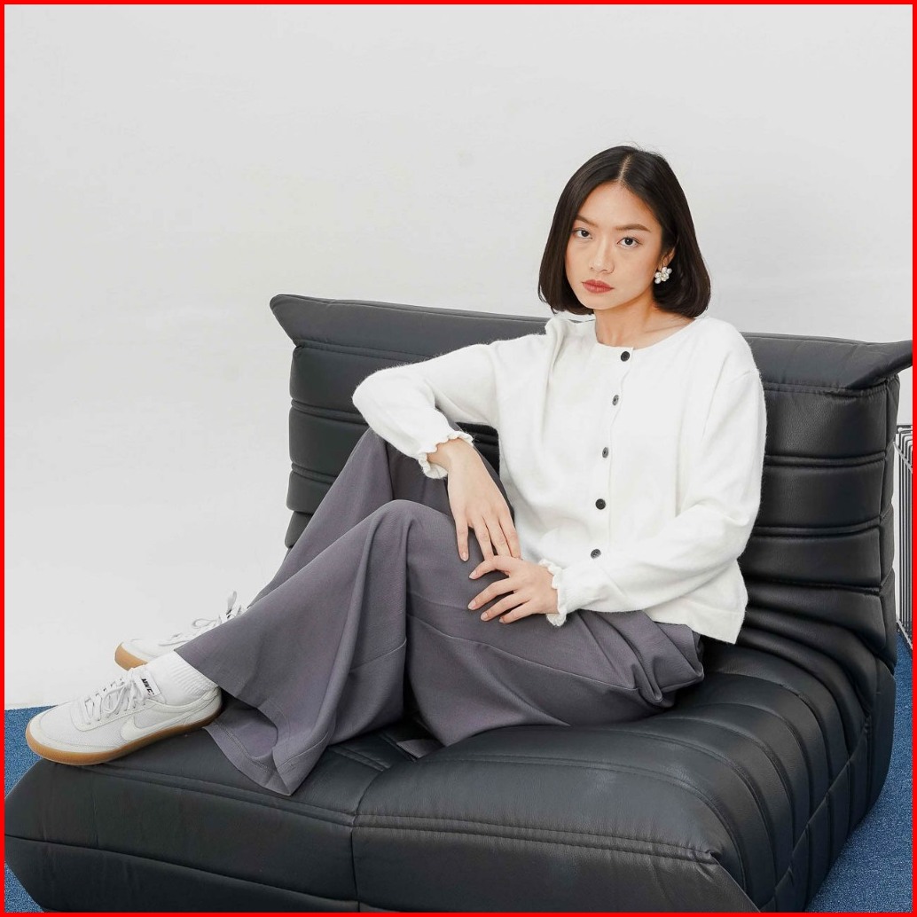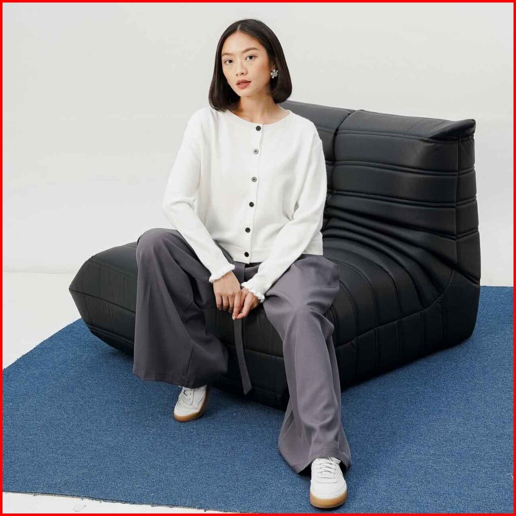 This Is April Baju Atasan Outer Rajut Wanita Lengan Panjang Becca Cardigan Brown Dan White