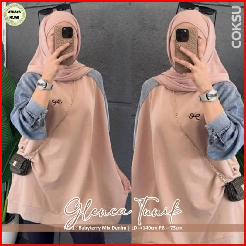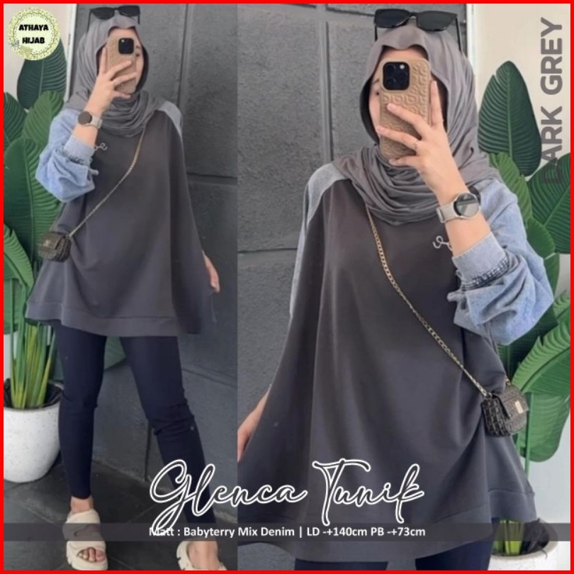 Atasan Wanita Glenca Tunik Babytery Mix Denim Tunik Wanita Kekinian Atasan Wanita Tunik Jumbo
