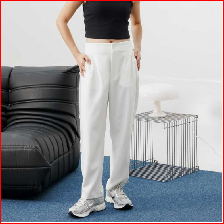 This Is April Celana Wanita Highwaist Panjang Highwaist Kulot Rico Pants Kerja Black Dan White