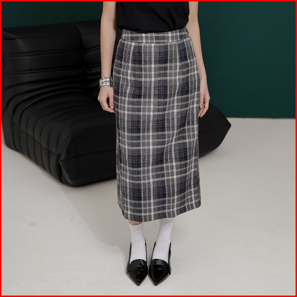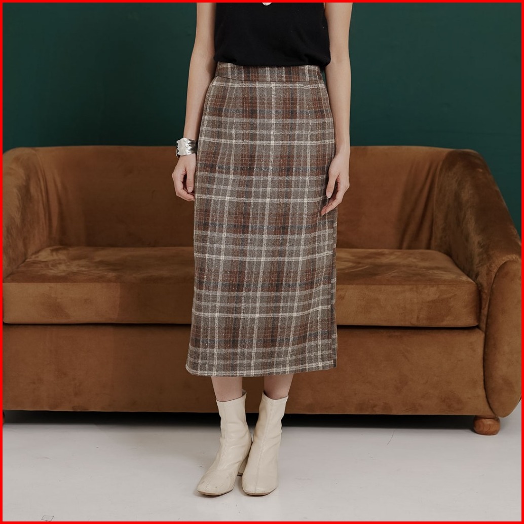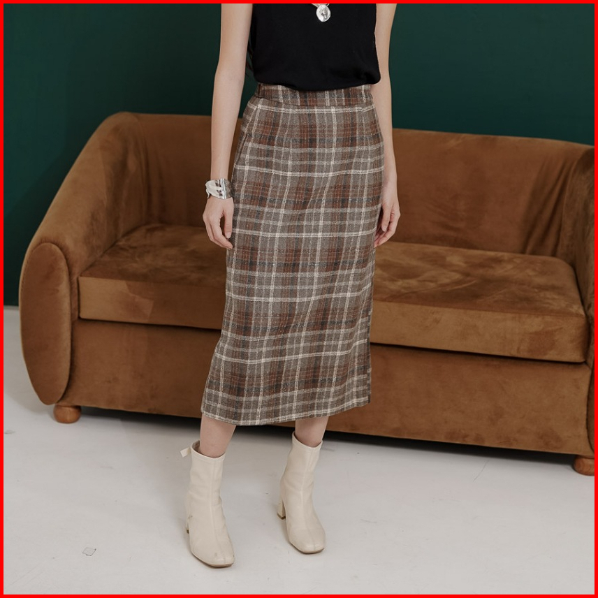This Is April Rok Bawahan Midi Wanita Kekinian Winter Skirt Brown Dan Grey