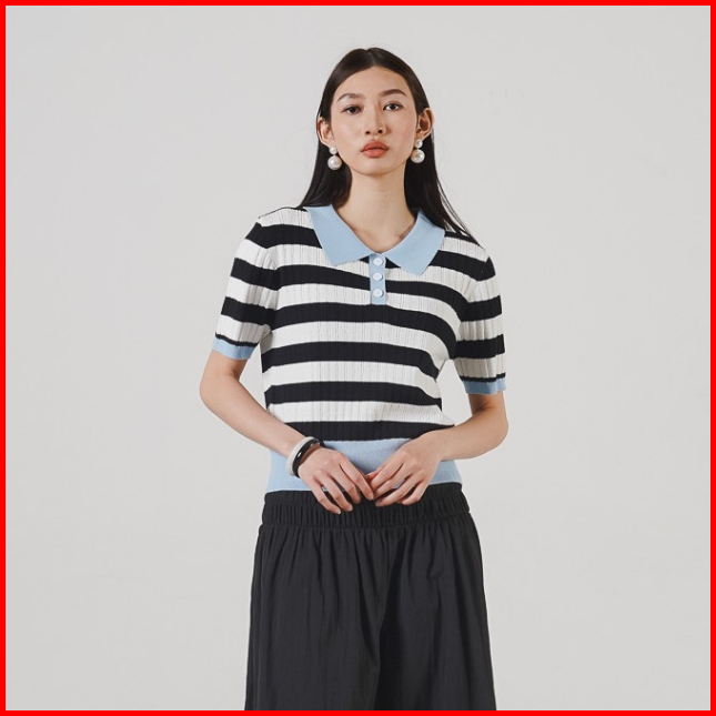 This Is April Baju Atasan Wanita Shirt Rajut Lengan Pendek Willin Top Black 10046600