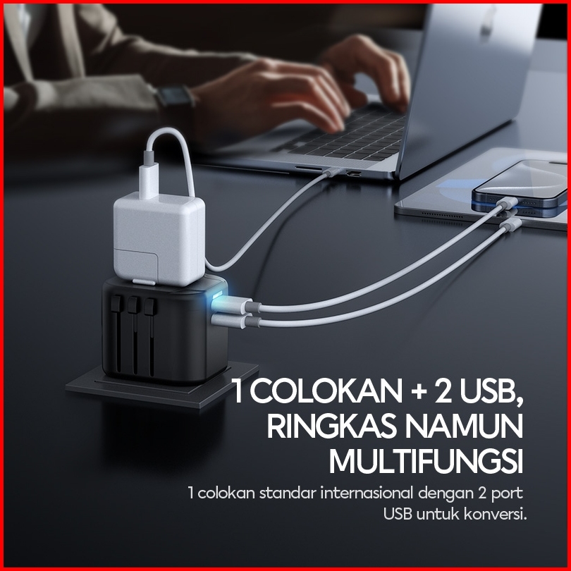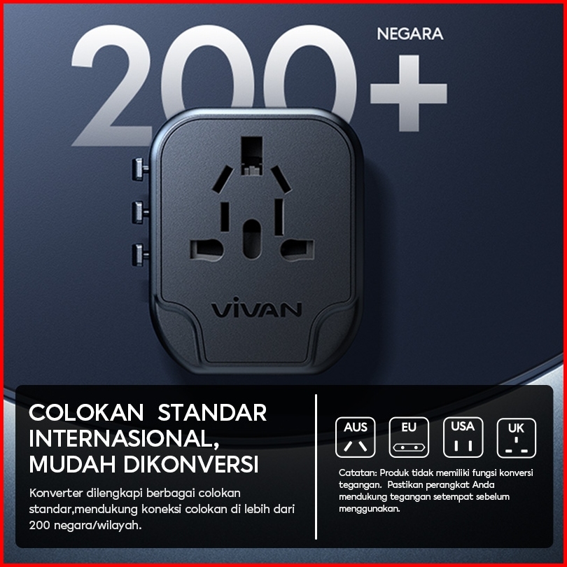 Vivan Travel Adaptor 12w Dual Usb A Multi-country Power Adapter Universal Colokan Listrik Fast Charging Steker Socket Vp