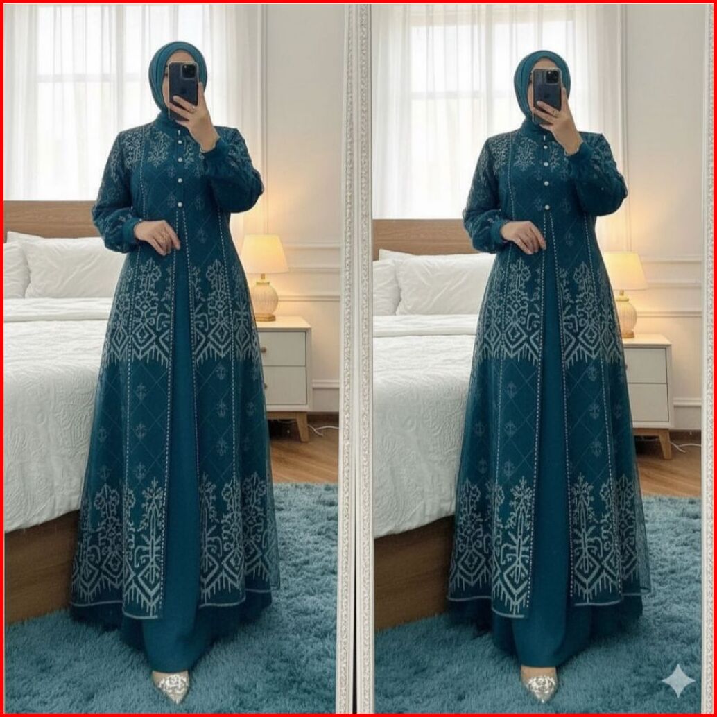 Denara Dress Gamis Muslim Brukat Wanita Mewah Matt Ceruty Babydol Mix Brukat Ful Puring Apk Swarosky