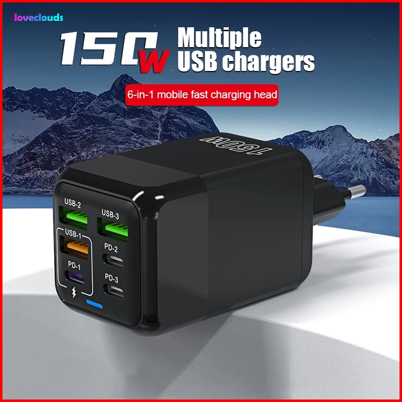 150w 3usb 3pd Adaptor Charger Fast Charging Usb Type C Universal Usb Port Eu Plug Wall Charger