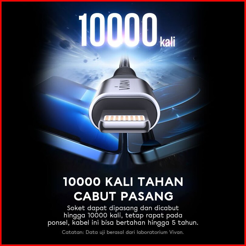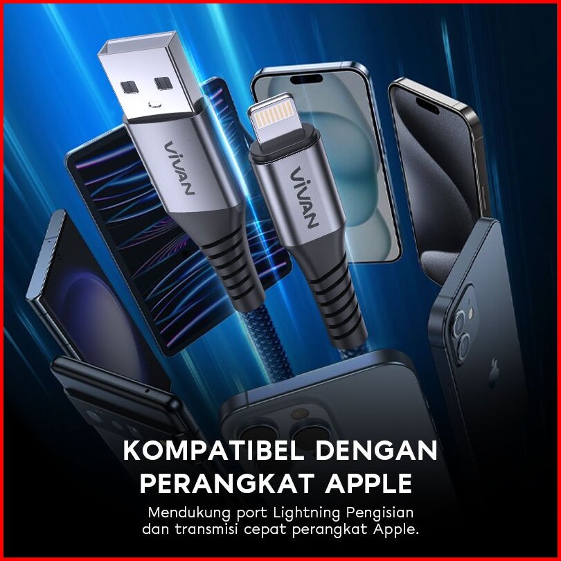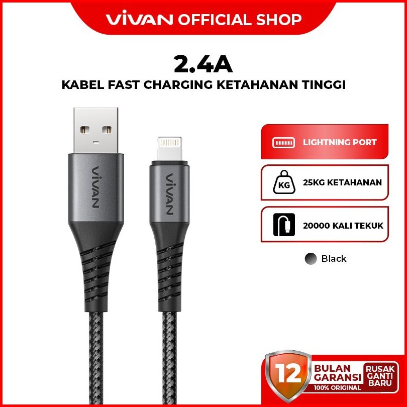 New Vivan Kabel Data Usb To Lightning Fast Charging 2.4a 1m Pd Qc 3.0 Vdual100 Garansi 12 Bulan